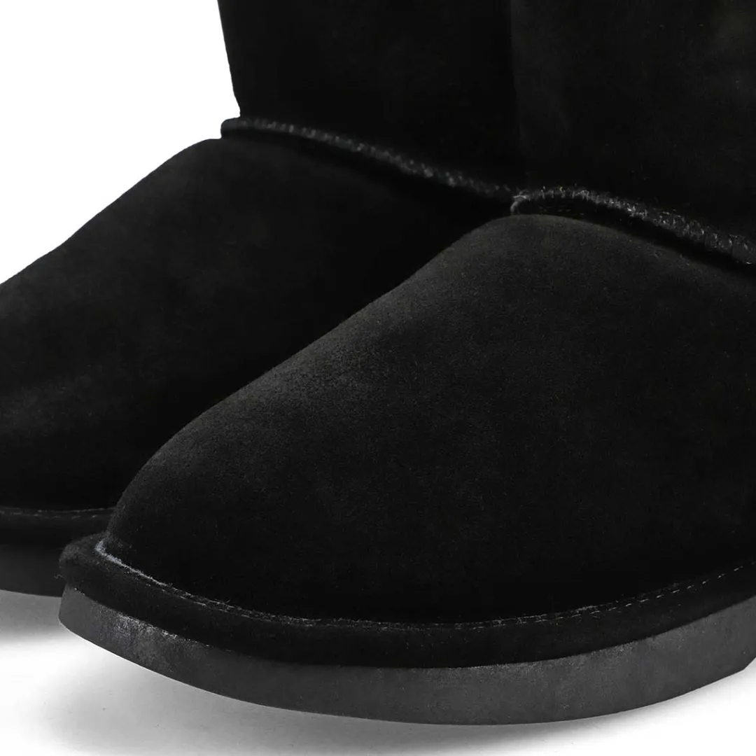 The Smocs 5 Low Pom suede cozy boots from SoftMoc can even be worn without socks, because the socks are built in! Featuring a beautiful suede upper with a faux wool lining that surrounds the foot in comfort. TPR outsole for durability and traction. You will want to put these on your must have list for this season! Style is not made for snow or ice conditions.