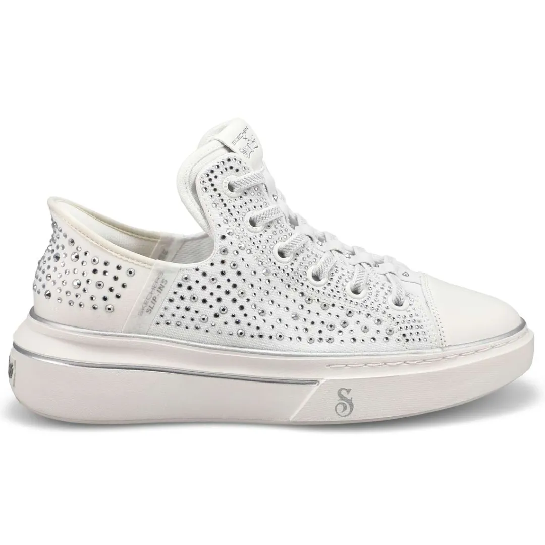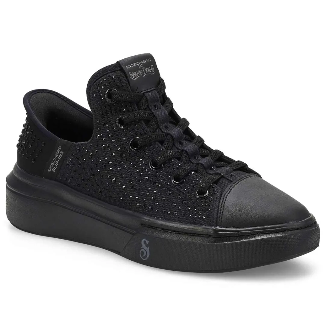 Step into another level of comfort and the flavor of Snoop with the Skechers x Snoop Dogg collection – sneakers for all walks of life. The Skechers Hands Free Slip-ins x Snoop Dogg: Snoop One -Rhine-Stoned is designed with Skechers’ exclusive Heel Pillow, this flossed-up version of the Snoop One features a rhinestone and studded canvas upper with metallic midsole trim and hands-free wearability that you can Just Slip In to, Snoop Style.