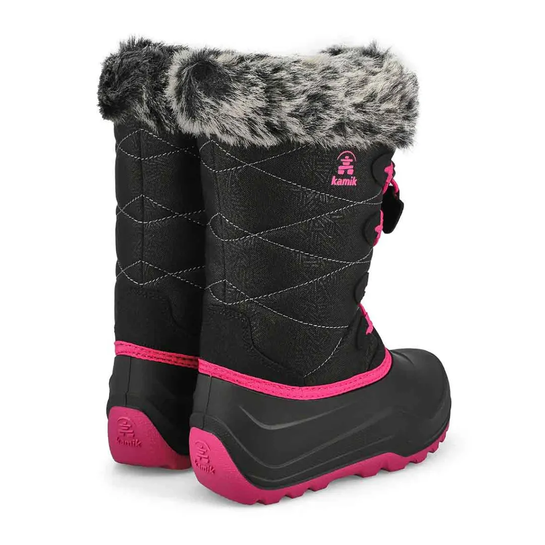 The Canadian-made Snowangel charcoal/ orchid winter boot from Kamik is an insulated boot that has what it takes to keep your little angel cozy, toasty and happy all winter long. Comfortable down to -40F/-40C , designed with a waterproof and recyclable lightweight synthetic RubberHe shell, and featuring an outsole with multi-directional treads for stability in in the deep snow, your little one can run around and make snow angels all day long.
