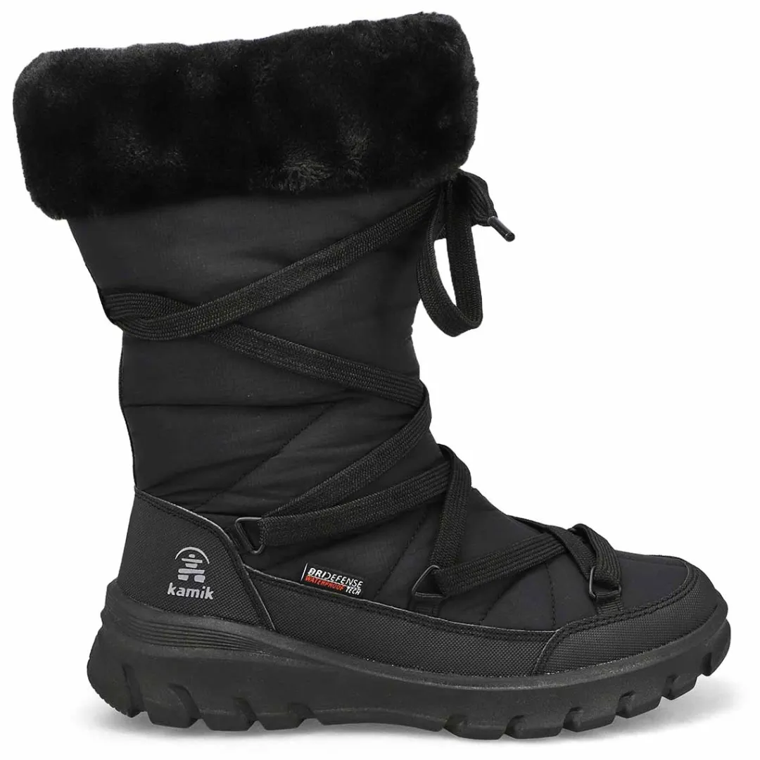 There’s no compromise when you step outside in the Snowdon Hi light grey winter boot from Kamik. Designed for maximum warmth and comfort on snowy days, and accented by a soft faux fur collar and a decorative lace, these convenient pull-ons are both highly functional and superbly stylish. A waterproof nylon upper, CushyStep EVA foam footbed, and lightweight rubber sole will ensure an enjoyable commute through the powdery stuff.