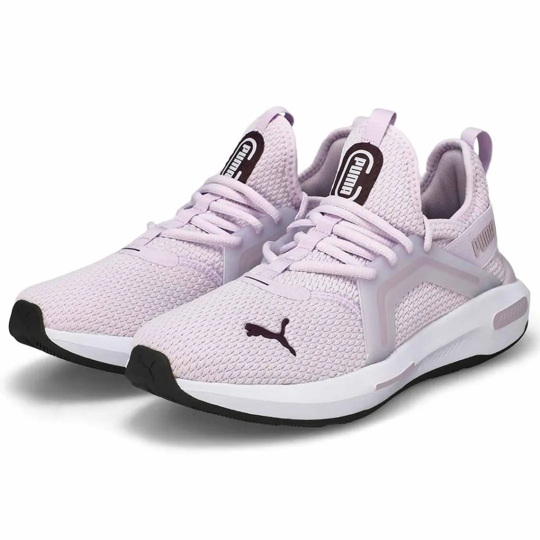 The Softride Enzo 5 lavender sneaker from Puma is a perfect pairing for the perfect pair – the Softride and Enzo franchises combine in this high-energy shoe. The technical cushioning in the footbed and sockliner optimises your comfort as you run, while the bold branding, jewel piece, and TPU caging offer a fresh vibe for your feet.