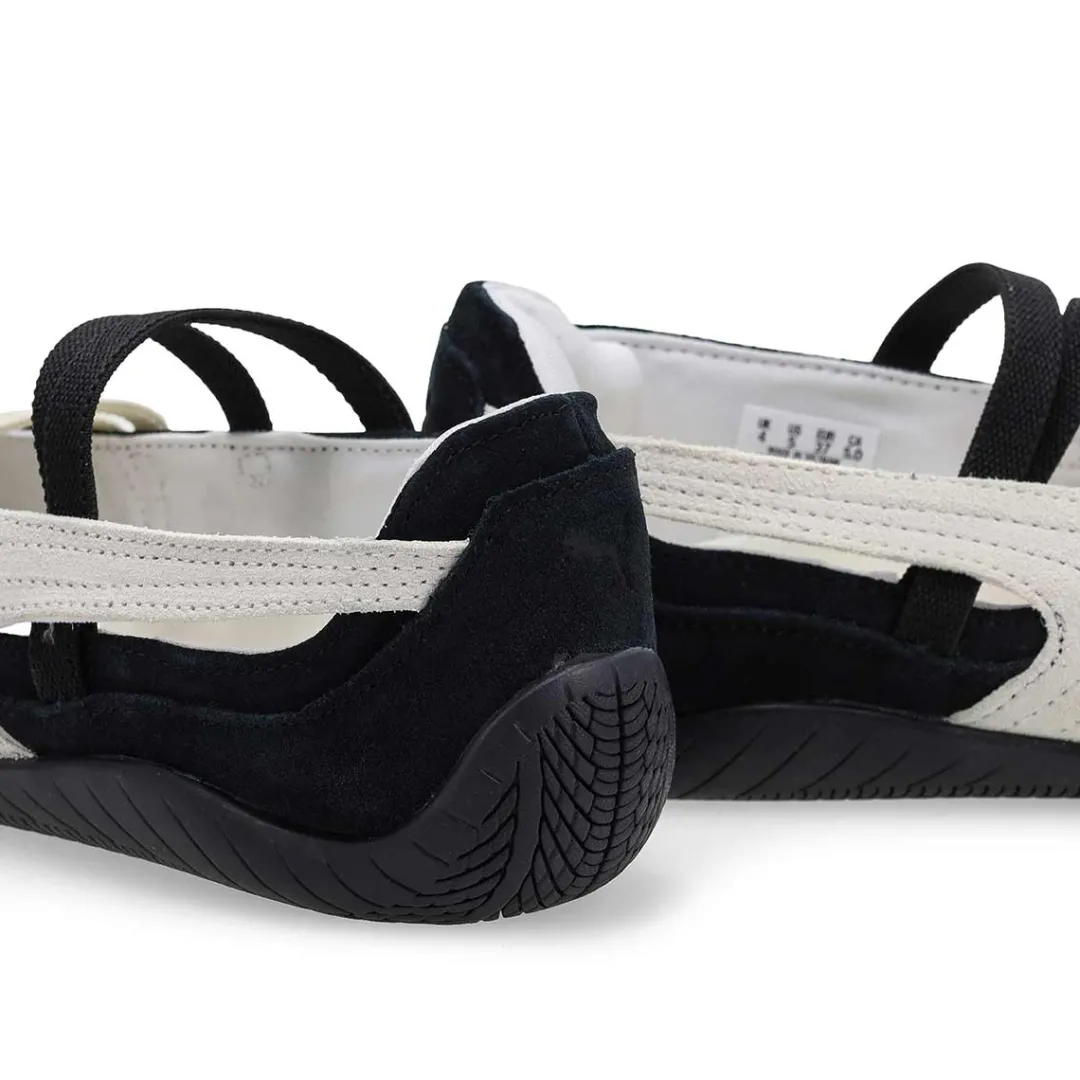 An icon of racing culture, the Puma Speedcat has been synonymous with speed, precision, and unparalleled performance for over 25 years. Over the decades it found itself on a new circuit, transcending the tracks of Monaco for the streets of global fashion capitals. Merging ballet elegance with that original racing DNA, the Speedcat Ballet features a suede upper, embroidered Puma cat, and elastic bands for a snug fit. Embrace the low-profile trend with this iconic Puma silhouette.