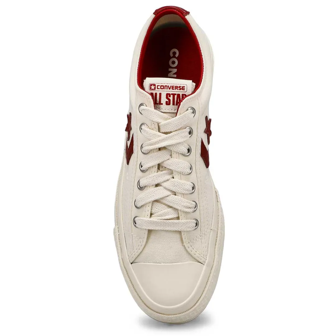 Up your shoe game in the street-ready Converse Star Player 76 egret/park red. Vintage details and retro colours combine for a look that belongs in your starting lineup. A gem from the archive that’s rooted in sport and reborn for the streets. Heavyweight canvas, archival nods and added comfort make this Star ready to shine again.