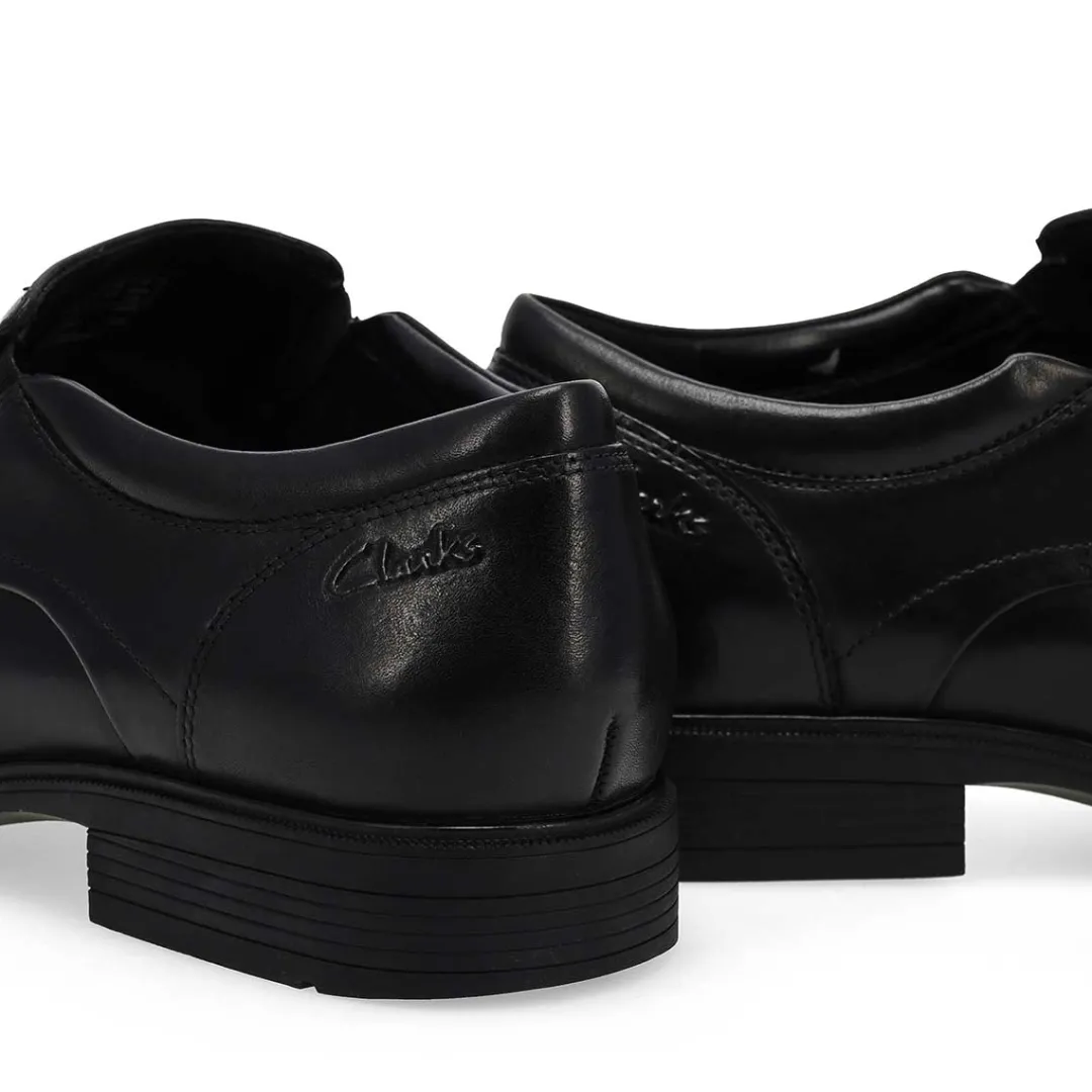 Perfect for any occasion, the Steadwell Step black Wide dress shoe from Clarks is a classic loafer enhanced with stretchy panels. Built on a slip-resistant rubber unit featuring Clarks’ Steady Tread sole design, it’s prepped to meet every demand of your day. Full-grain leather uppers arrive in a versatile dark tan colorway, while the molded comfort footbed guarantees plush underfoot support.