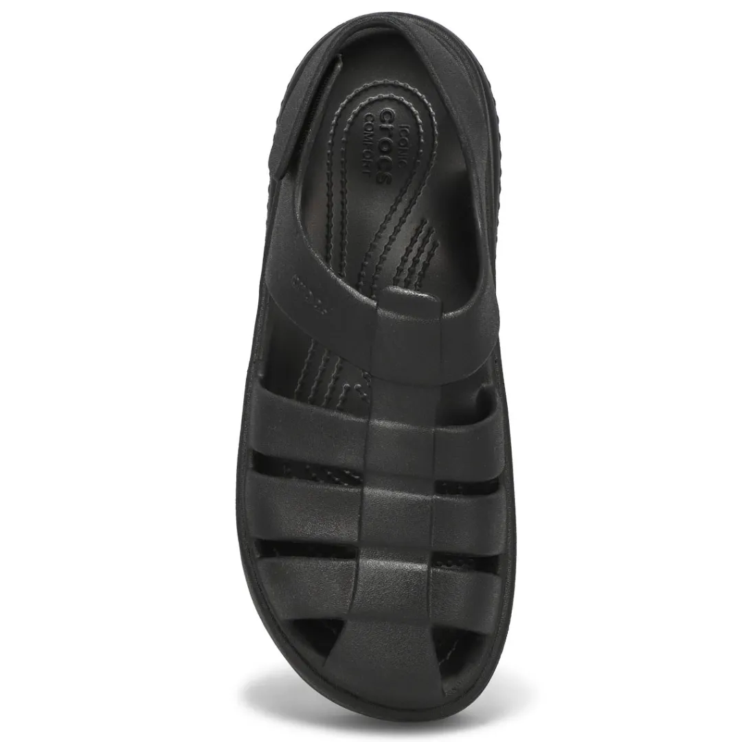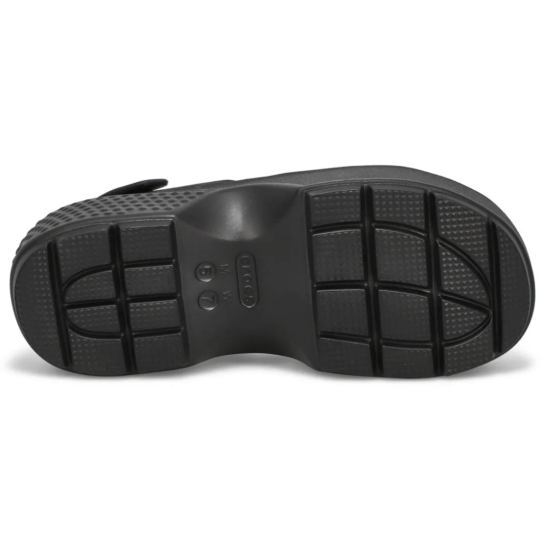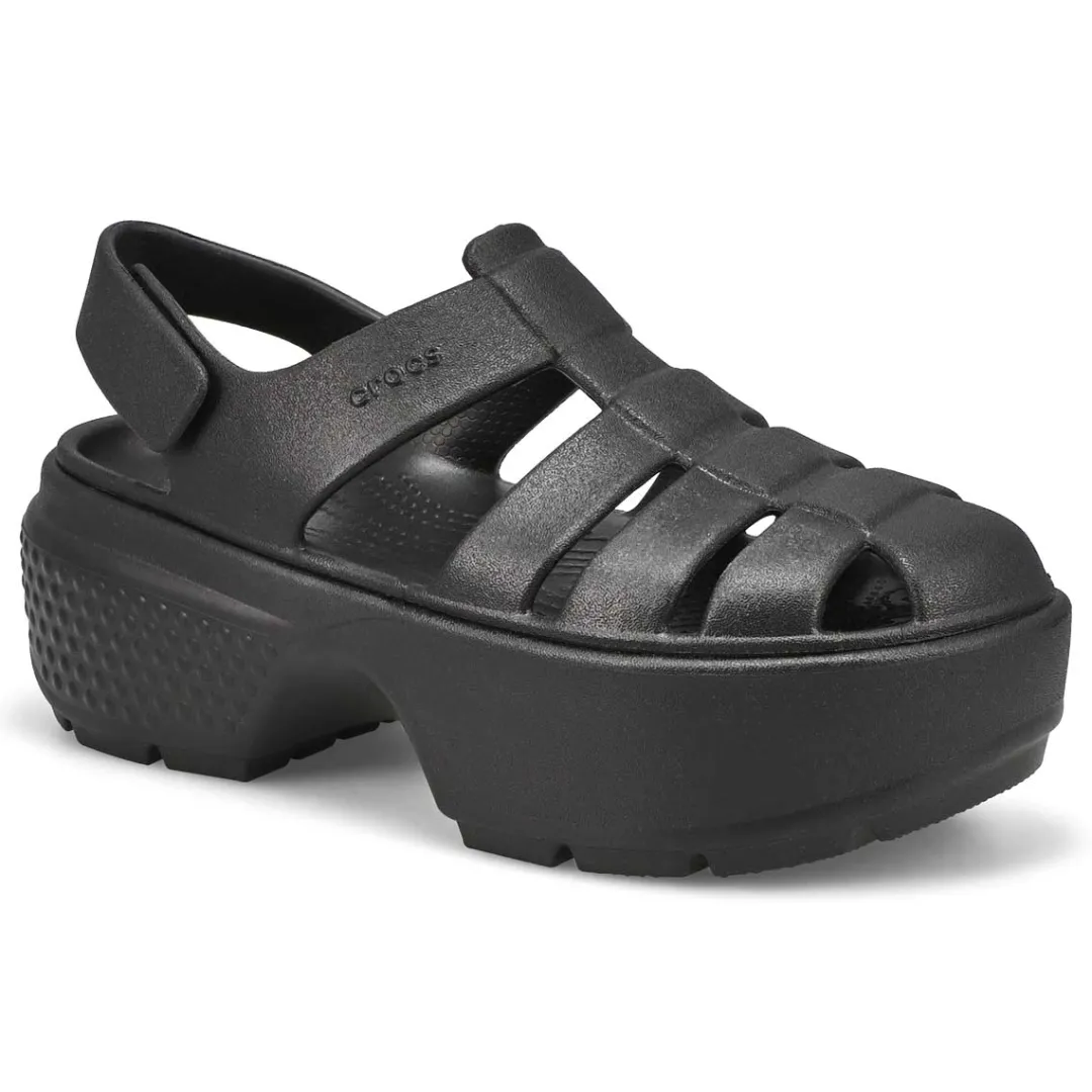 The Stomp Fisherman Platform black clog from Crocs features stylish exaggerated soles that are excessively chunky and daring while still feeling light on your feet. This updated silhouette takes on a fresh look by adapting the Fisherman styling for a fashion-forward sandal that’s closed toe, but still breezy. Adjustable back strap for a tailored fit. Blending style and function, the Stomp Fisherman Sandal lets you stomp to your own eye-catching beat.
