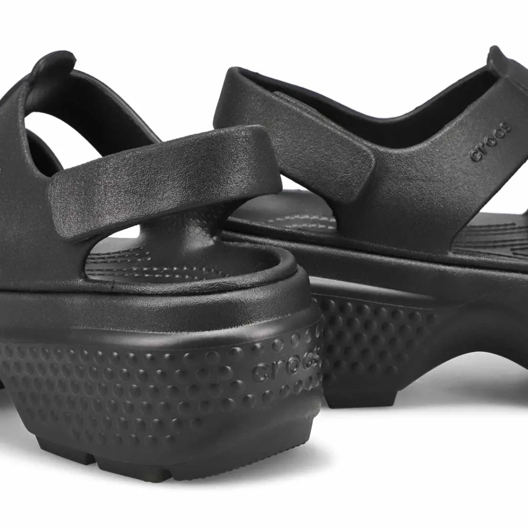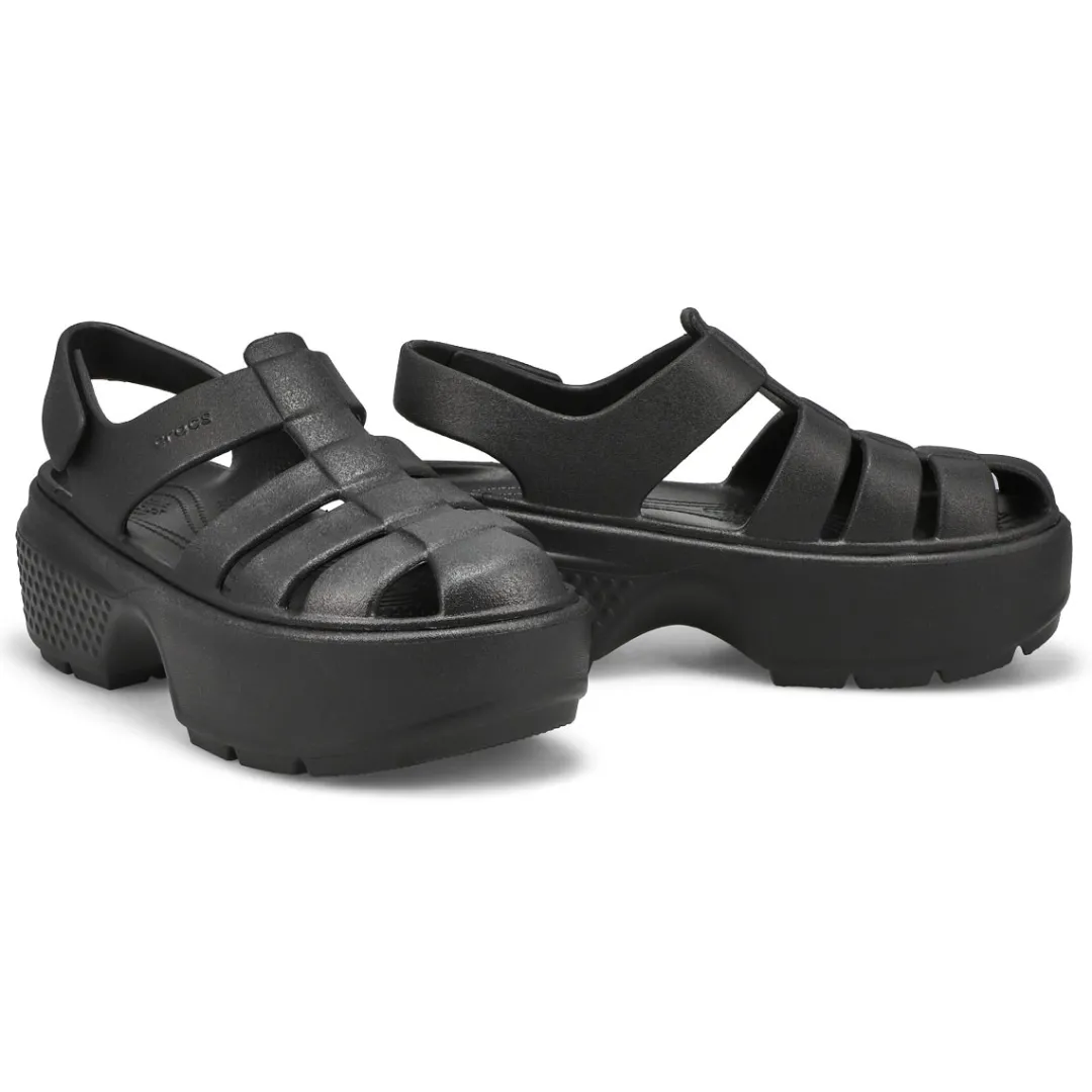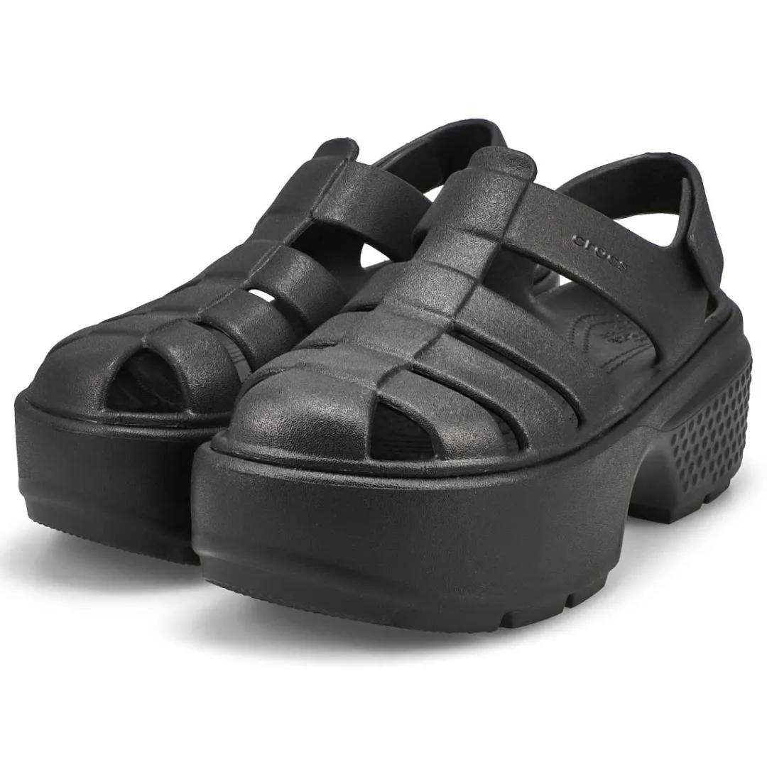 The Stomp Fisherman Platform black clog from Crocs features stylish exaggerated soles that are excessively chunky and daring while still feeling light on your feet. This updated silhouette takes on a fresh look by adapting the Fisherman styling for a fashion-forward sandal that’s closed toe, but still breezy. Adjustable back strap for a tailored fit. Blending style and function, the Stomp Fisherman Sandal lets you stomp to your own eye-catching beat.