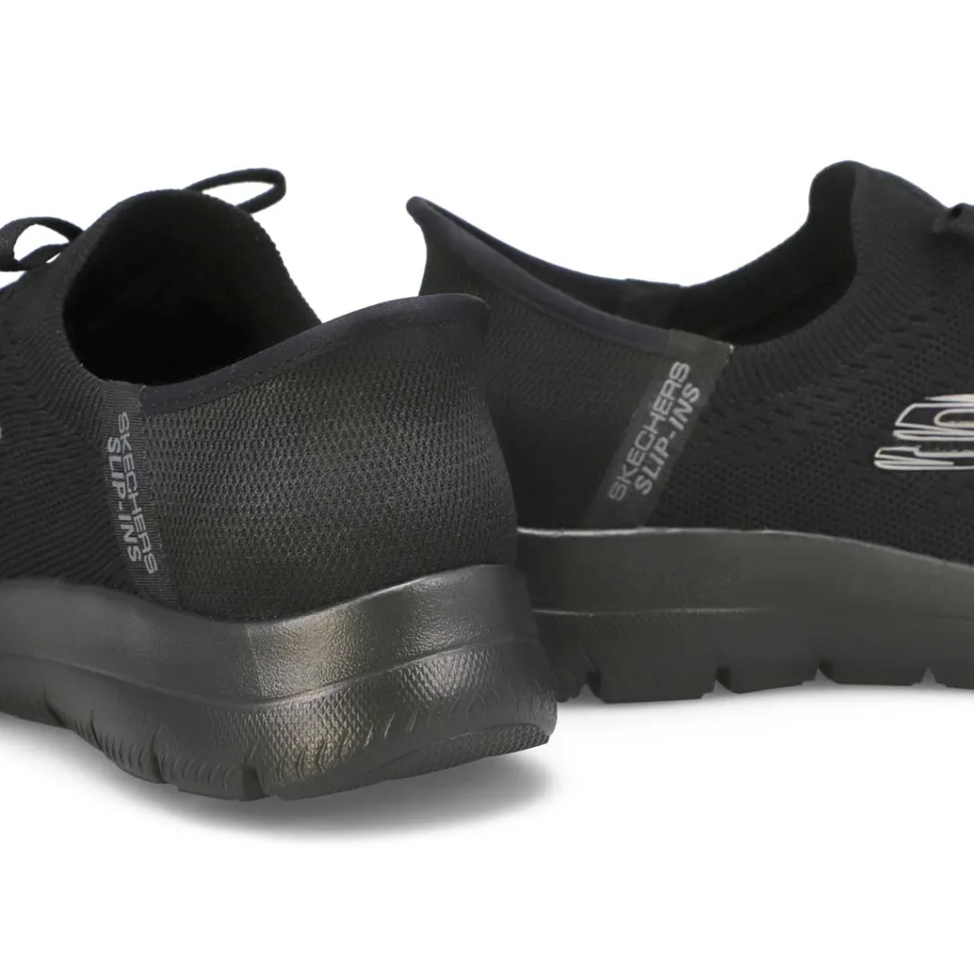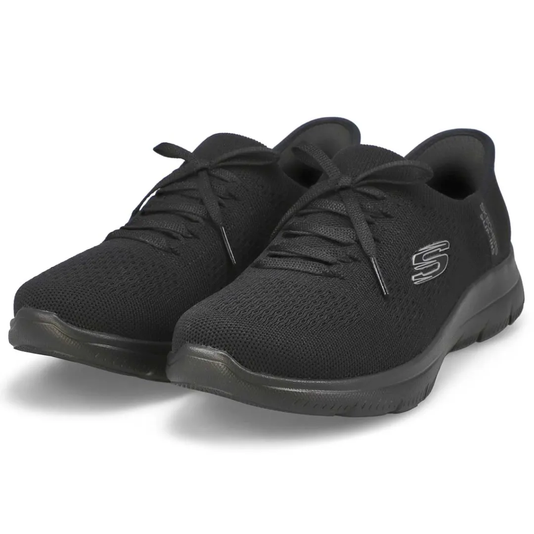 Pick up the pace with increased ease-of-wear and platinum comfort wearing the Hands Free Slip-ins Summits New Daily Sneaker. Designed with their exclusive Heel Pillow holds your foot securely in place. This vegan style features a Stretch Fit engineered knit upper with fixed laces, midsole trim and a cushioned Skechers Air-Cooled Memory Foam comfort insole.