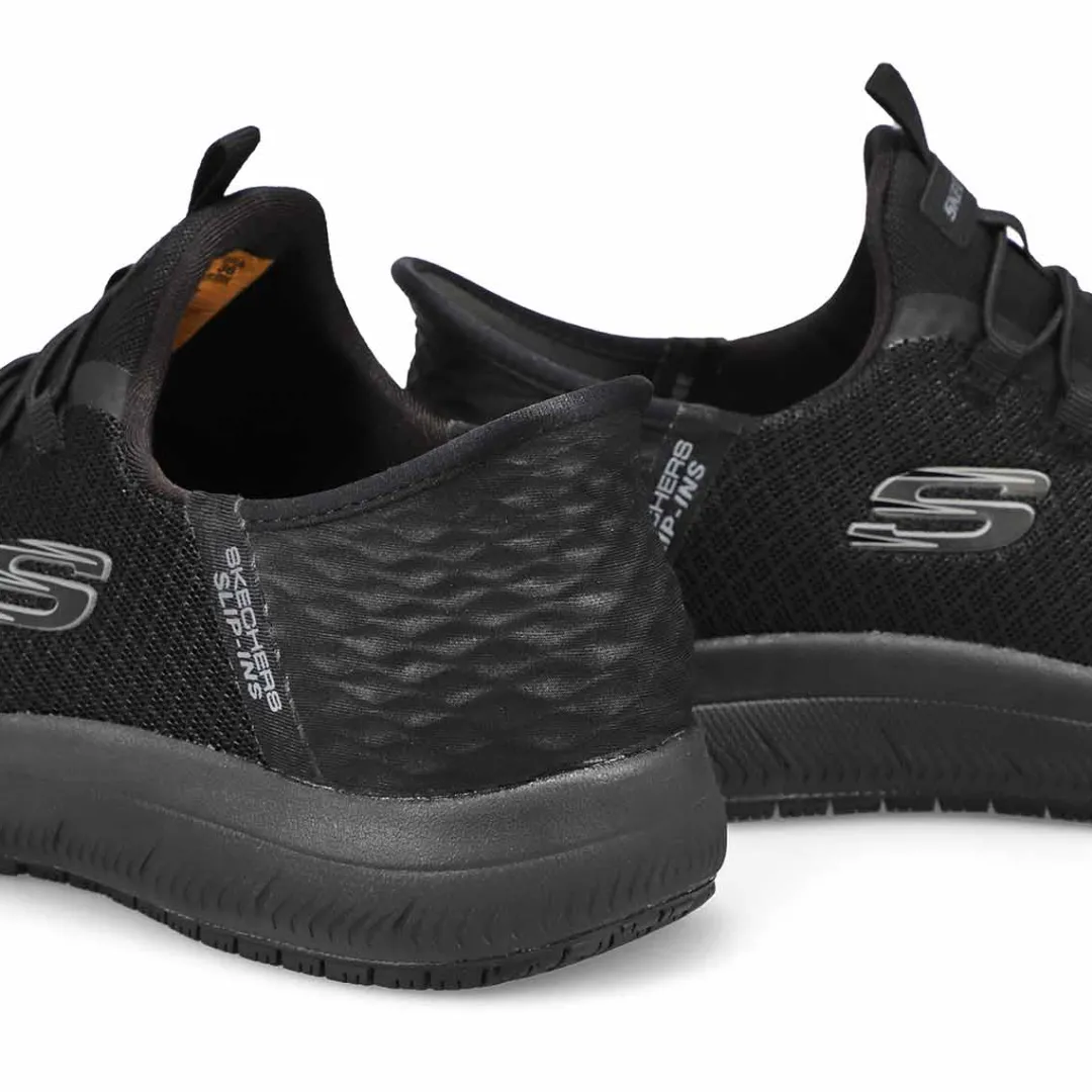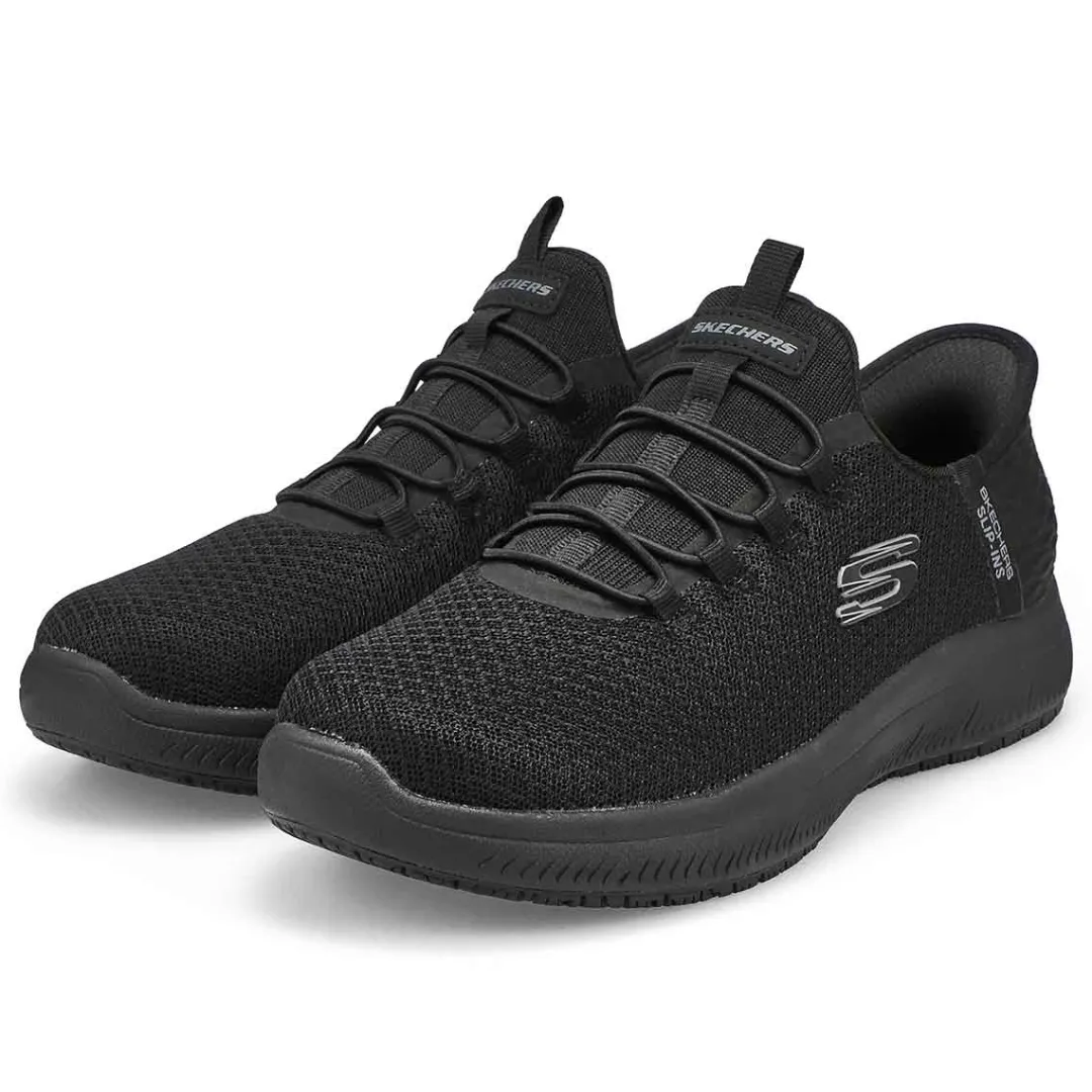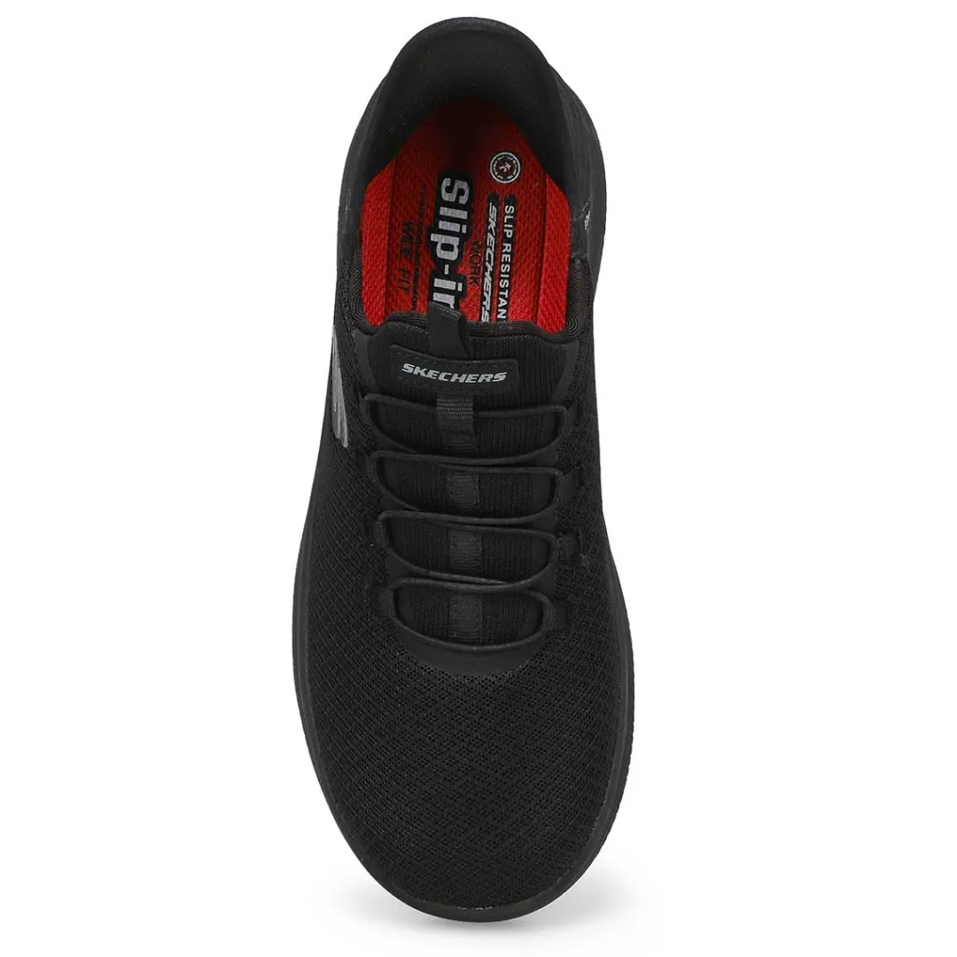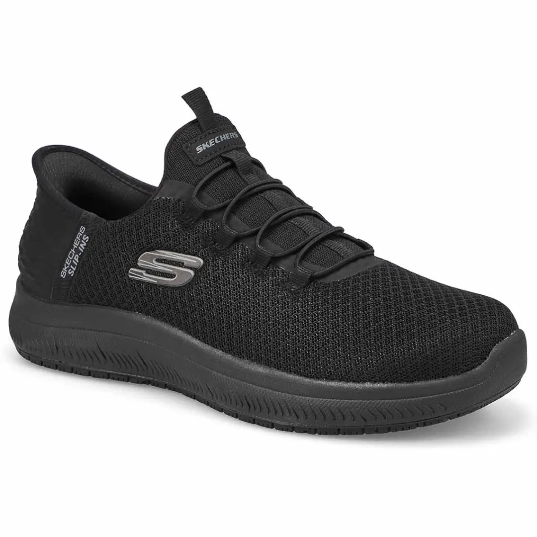 Experience slip-resistant safety with slip-on convenience wearing Skechers Hands Free Slip-Ins Work: Summits SR – Enslee. This TOUCHLESS FIT work style features a knit mesh and synthetic upper with our exclusive Heel Pillow, a slip-resistant outsole, plus a Skechers Air-Cooled Memory Foam cushioned comfort insole. Electrical Hazard. Wide Width