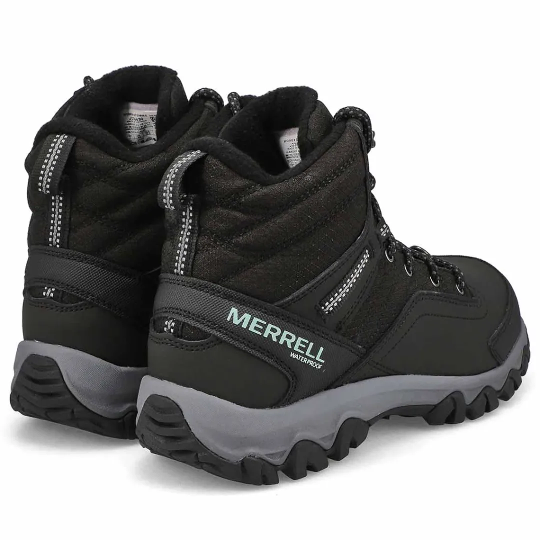 With waterproof coated leather, a waterproof membrane, and 200g of warm insulation, you can depend on the Themo Akita Mid Waterproof black winter boot from Merrell. This cold-weather boot helps protect against the elements this season. Featuring a bellows tongue to hellp keep out debris. Kinetic Fit BASE removable contoured insole for flexible support.