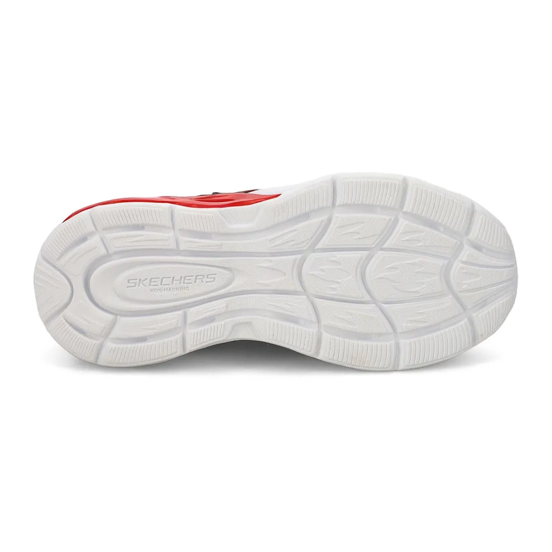 Fan the flames of fun with every cushioned step in the Hands Free Slip-ins S-Lights: Thermo-Flash 2.0 black/ red sneaker from Skechers. Designed with Skechers exclusive Heel Pillow that helps hold your foot securely in place, this thematic slip-on features an athletic mesh and synthetic upper, stretch laces, and a sculpted midsole with a light-up “flames” tech piece. On/off light button.