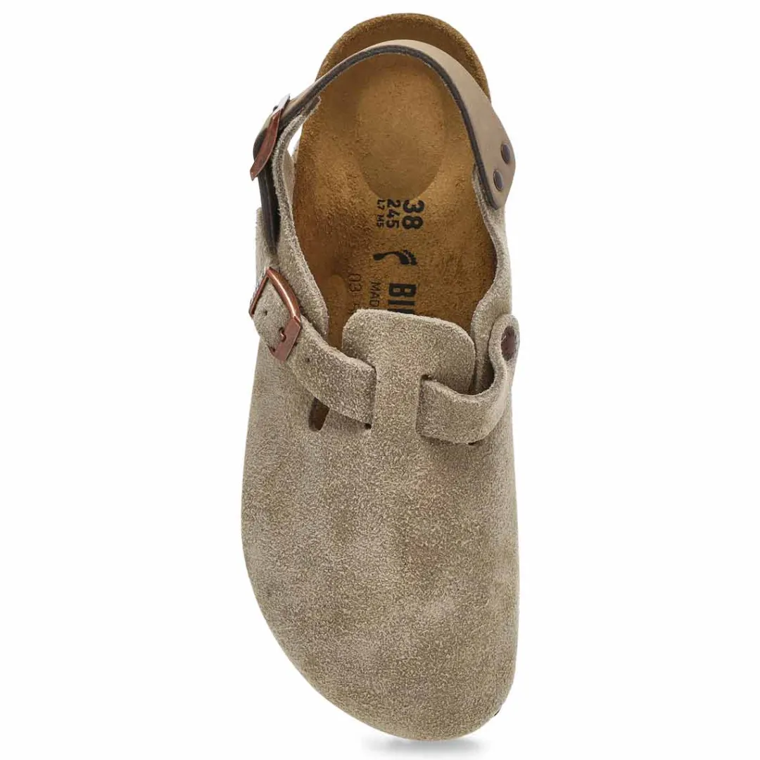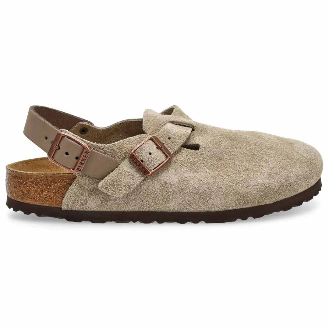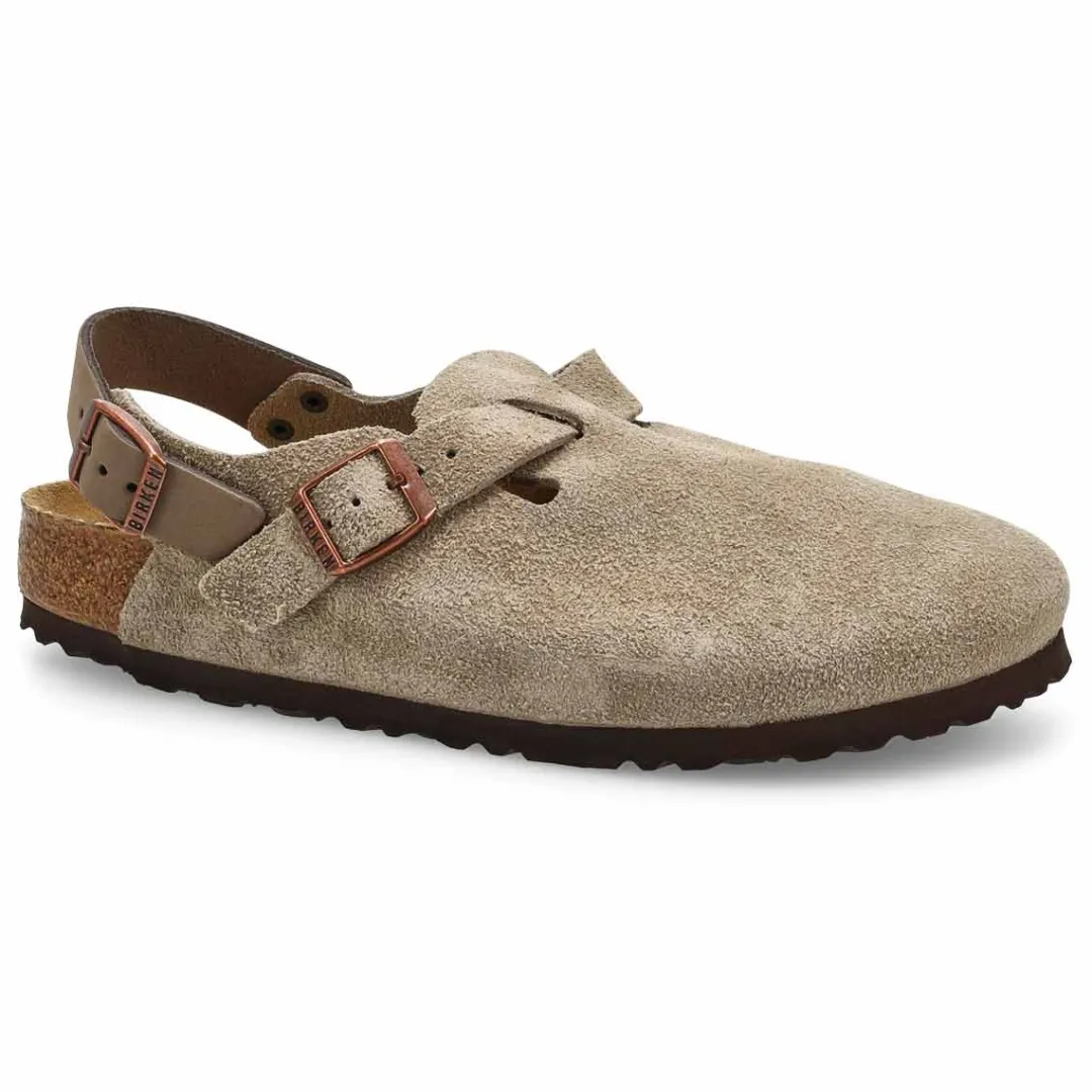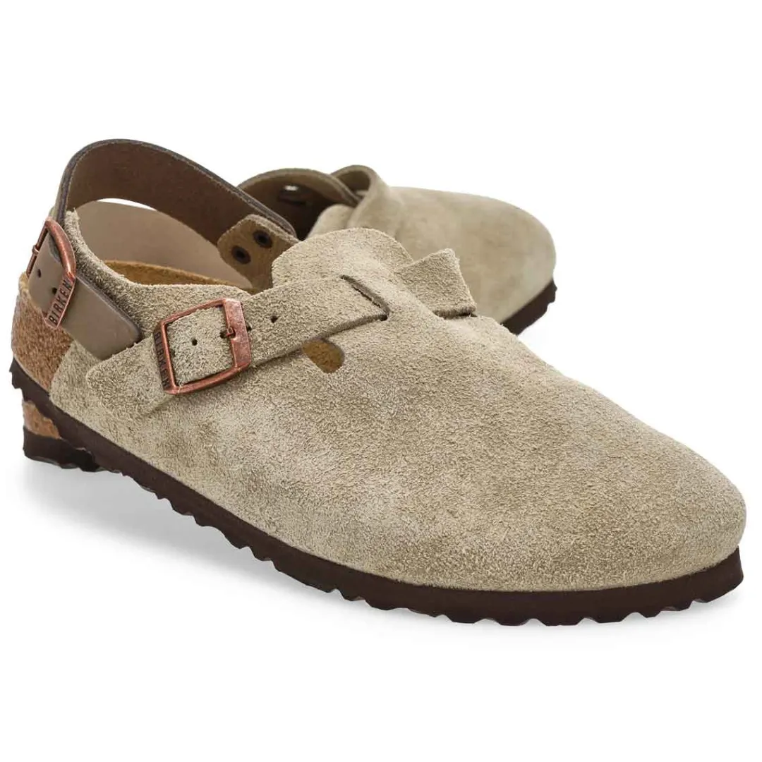 Embraced by the fashion community for its elevated sense of ease, the Tokyo taupe suede clog from Birkenstock doubles down on its reputation in classic suede. With a tonal leather backstrap and original contoured footbed, this one is so comfortable you’ll never give it a second thought. Made in Germany. Narrow Width.