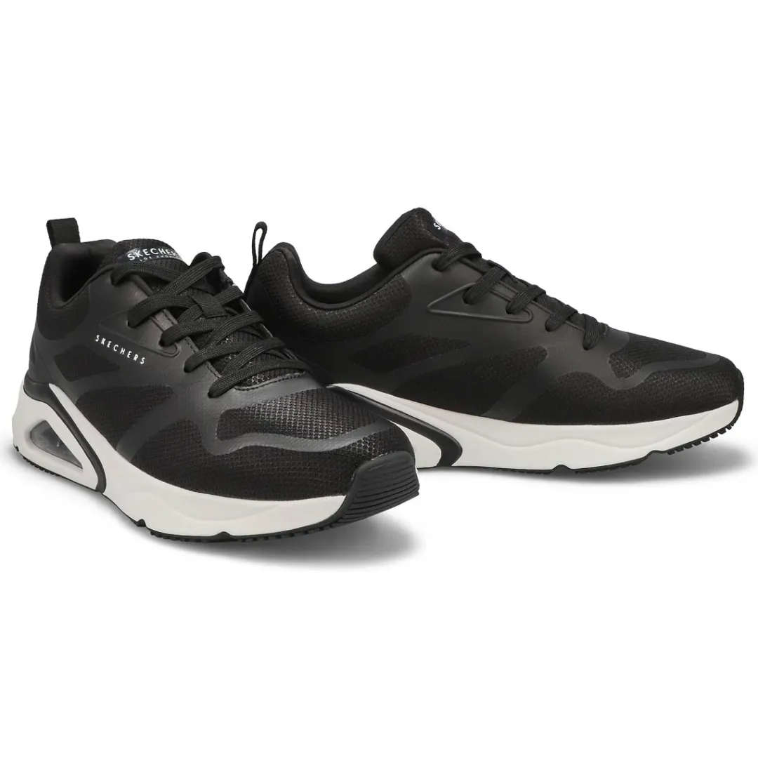 Take your style to the next level with Tres-Air Uno – Revolution-Airy black sneaker from Skechers. This athletic inspired lace-up features a sleek closed mesh upper with hotmelt overlay details, a Skechers Air-Cooled Memory Foam insole and a visible Skech-Air airbag. The Tres-Air Uno-Revolution-Airy Sneaker is designed with a flexible traction outsole.