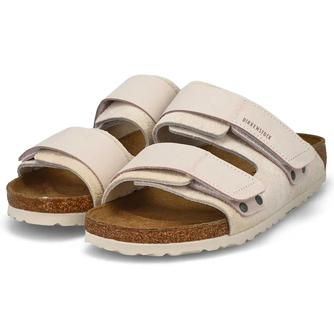 Minimalist-friendly design, maximum comfort. The Uji 2 strap antique white Soft Footbed sandal from Birkenstock features a suede upper that comes together softly over the foot, secured by nubuck hook-and-loop straps for the perfect fit. With an original contoured footbed for support, it’ll feel uniquely yours wherever you take it. Narrow Width. Made in Germany