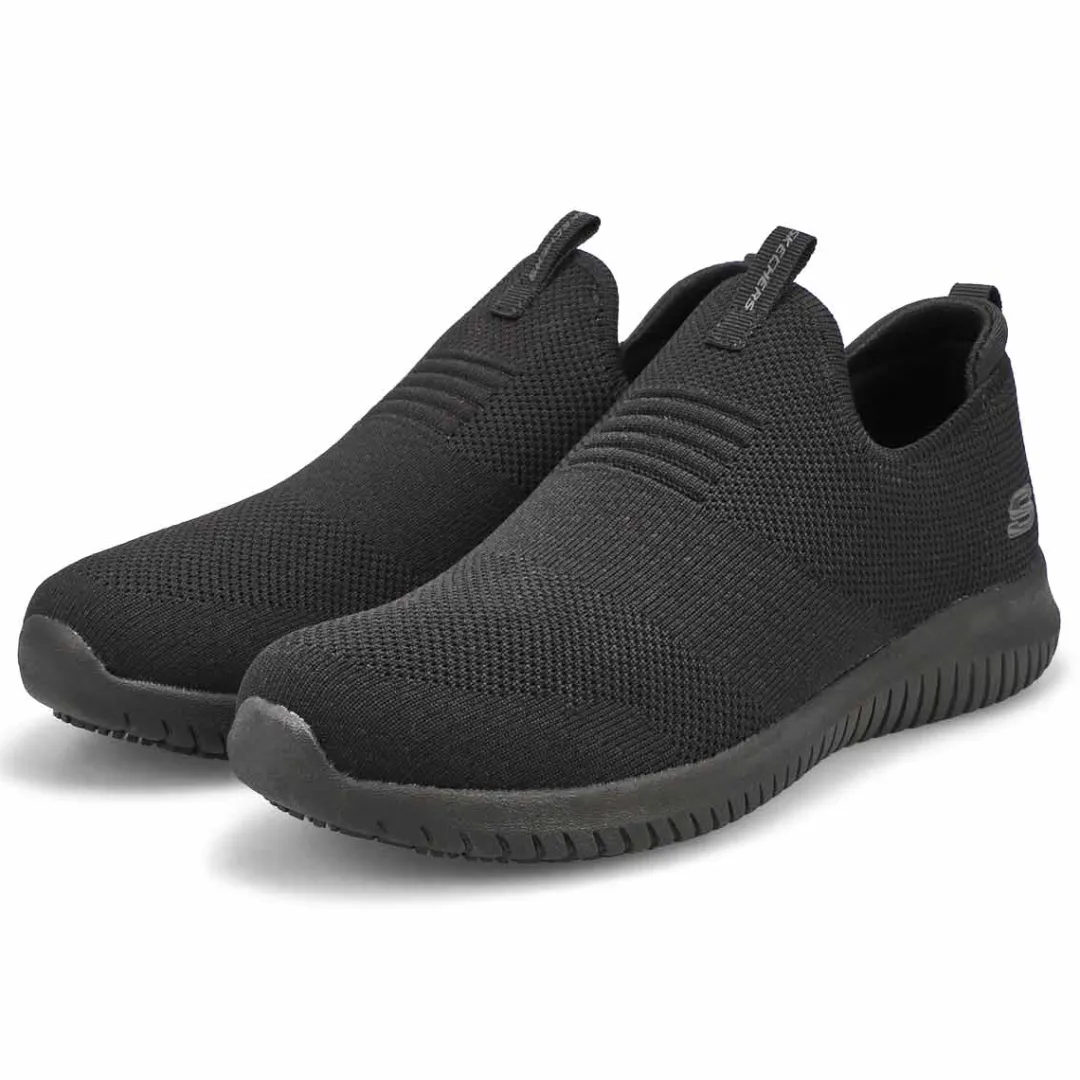 A sporty favorite style puts in a full day’s comfort with Skechers Work Relaxed Fit: Ultra Flex Slip Resisant sneaker. This slip-resistant design features a mesh knit upper with a slip-on style and cushioned Air-Cooled Memory Foam insole. Relaxed Fit design for a roomy comfortable fit at toe and forefoot.