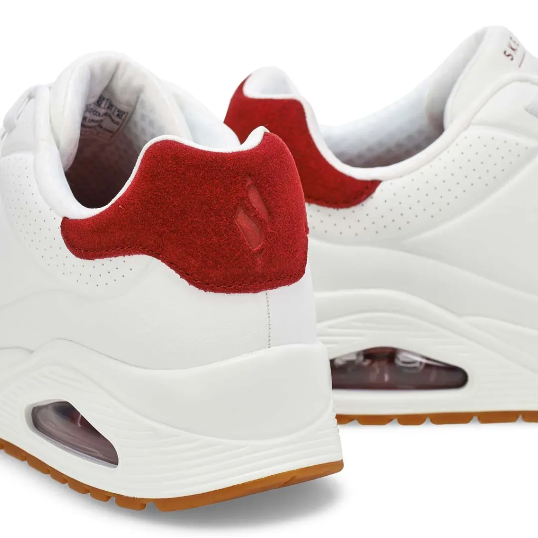 Bring pitch-perfect style and comfort to the pavement wearing Skechers Street x Harry Kane – Off Pitch Collection: UNO – Harry Kane Air. Signed by global football star, Harry Kane, this iconic style features a debossed durabuck upper with suede heel trim, a Skechers Air-Cooled Memory Foam insole, and a Skech-Air visible airbag midsole.