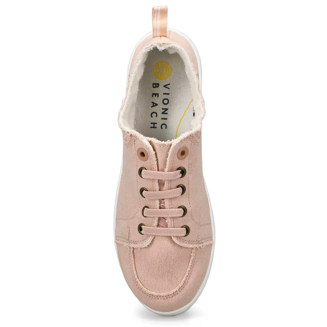 The Venice Pismo cream sneaker from Vionic is a laced up look that you don’t need to tie, this washable slip on is made with eco-conscious cotton. And hey, they’re vegan too. Removable Twill Covered EVA footbed for that all day comfort. Elastic snug fit heel for easy on and off with a durable TPR outsole. Air Dry,