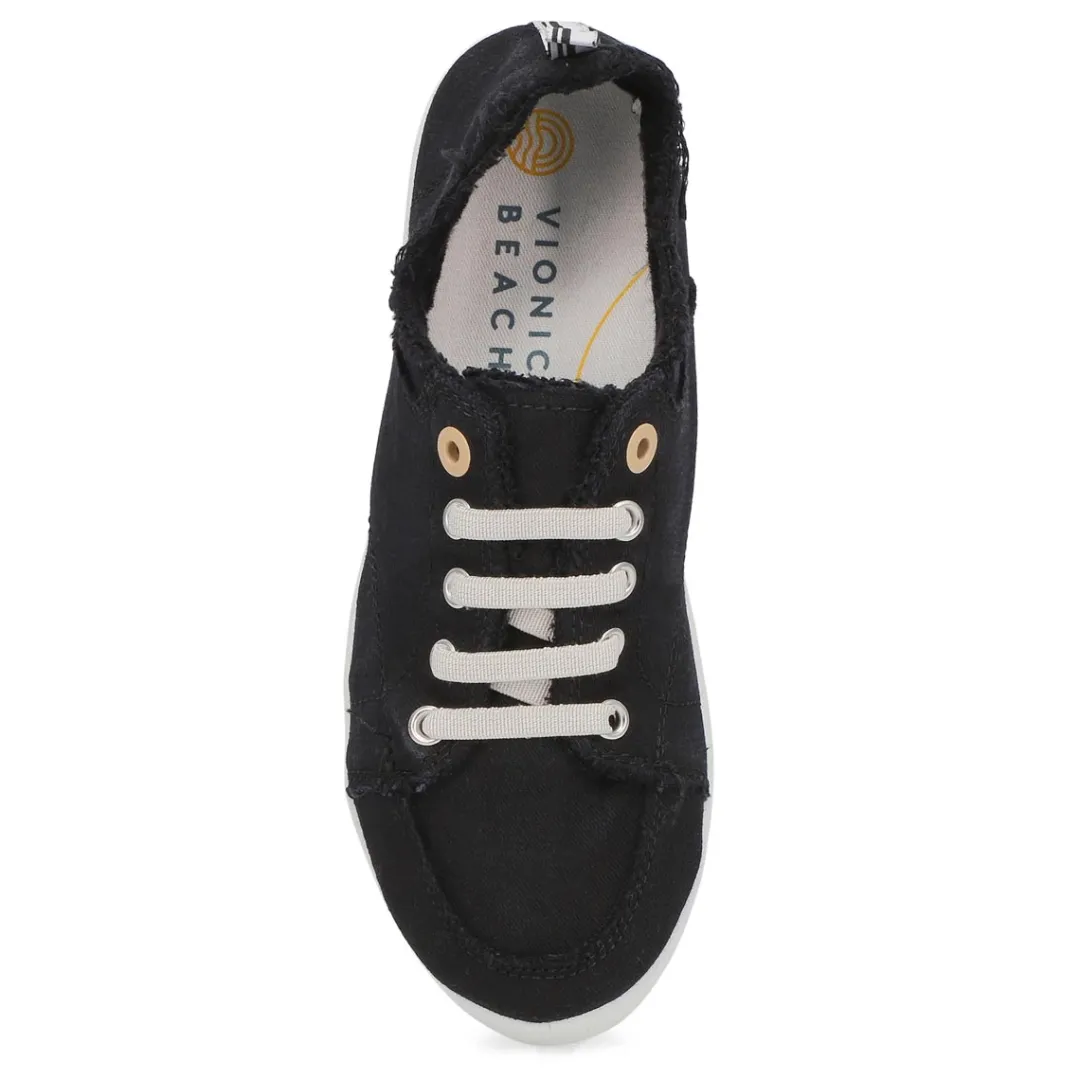 The Venice Pismo in skyway sneaker from Vionic is a laced up look that you don’t need to tie, this washable slip on is made with eco-conscious cotton. And hey, they’re vegan too. Removable Twill Covered EVA footbed for that all day comfort. Elastic snug fit heel for easy on and off with a durable TPR outsole. Air Dry