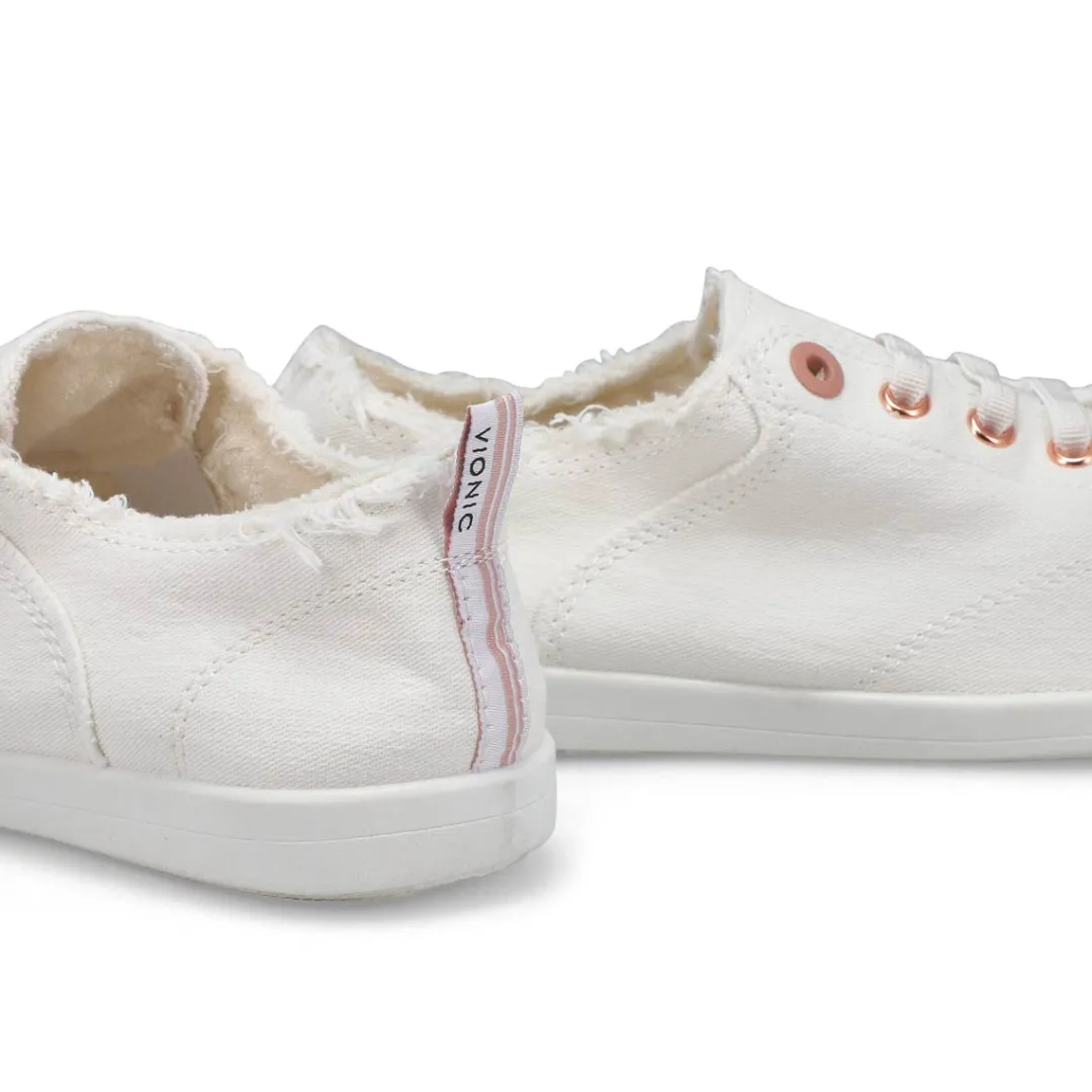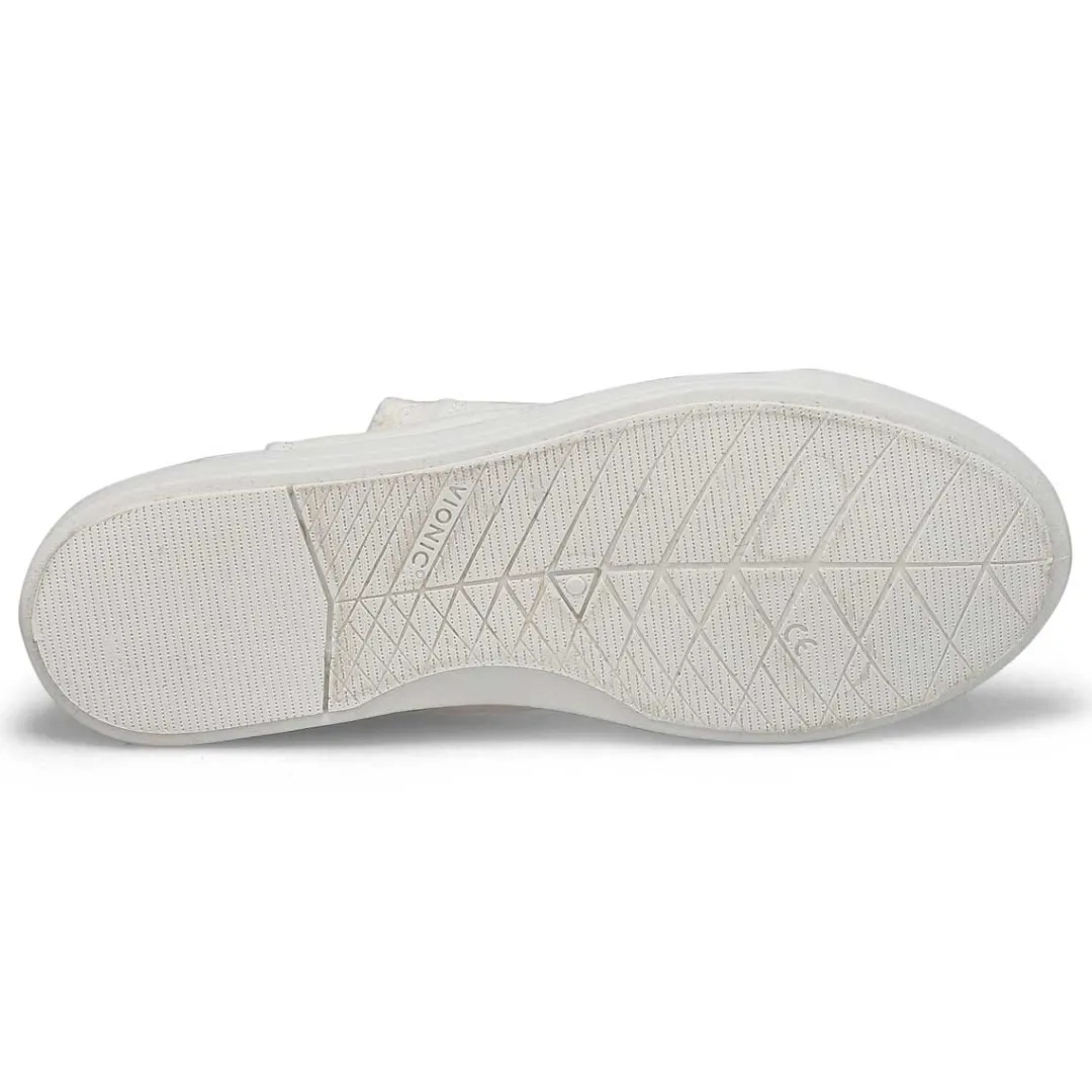 The Venice Pismo cameo rose sneaker from Vionic is a laced up look that you don’t need to tie, this washable slip on is made with eco-conscious cotton. And hey, they’re vegan too. Removable Twill Covered EVA footbed for that all day comfort. Elastic snug fit heel for easy on and off with a durable TPR outsole. Air Dry,