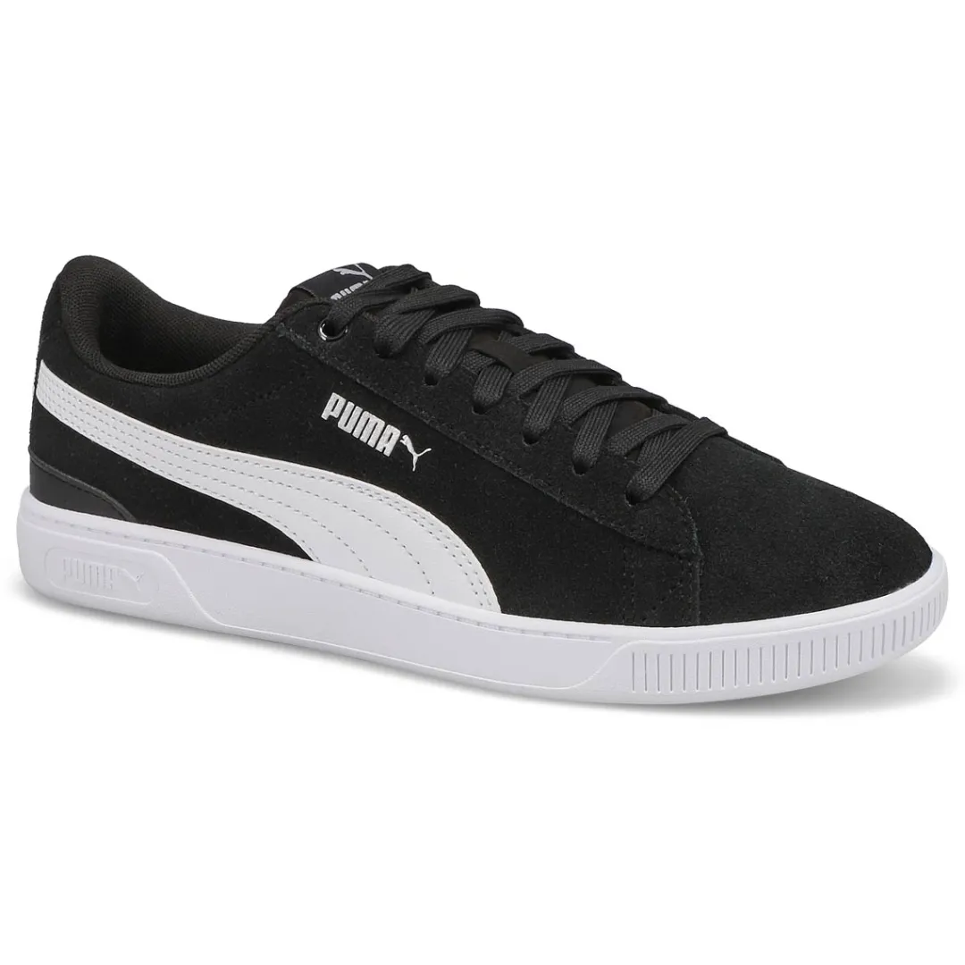Baseketball-inspired, with clean, court-ready lines and a sporty silhouette, the Vikky 3.0 black/ white/ silver lace up sneaker from Puma makes classic look cool. Featuring comfortable construction, branding and elements for added flair. The upper of this shoe is made with at least 20% recycled materials as a step toward a better future.