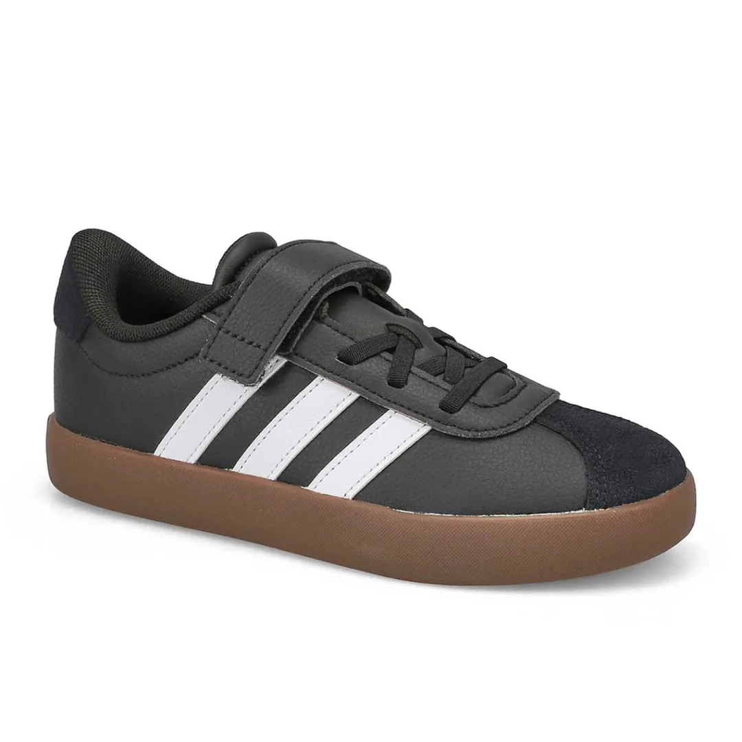Classic and sporty, these skater-style sneakers are great for active kids. A smooth leather upper and a soft suede toe cap offer durability and style. Underneath, a rubber cupsole provides traction on any surface. When there’s no time to waste, stretchy laces simply slip on while the hook-and-loop top strap fastens at a touch.