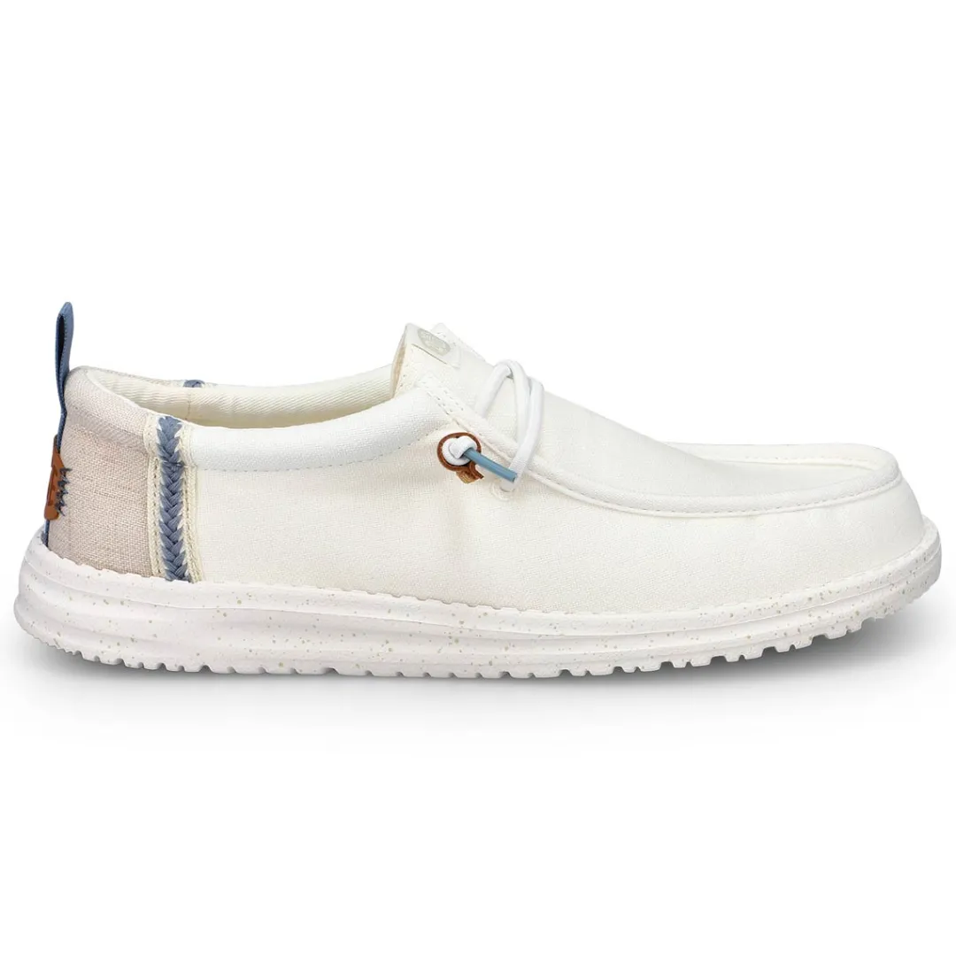 Breeze through your day in effortless style with the Wally Craft Linen Grey/Faded Denim Casual Shoe from HEYDUDE. Inspired by the relaxed feel of your favorite linen shirt, these travel-ready go-to’s deliver lightweight comfort and breathability. Sophisticated details like leather tassels add a refined touch, while the easy-on system and cushy, removable insole keep every step casual, confident, and adventure-ready.
