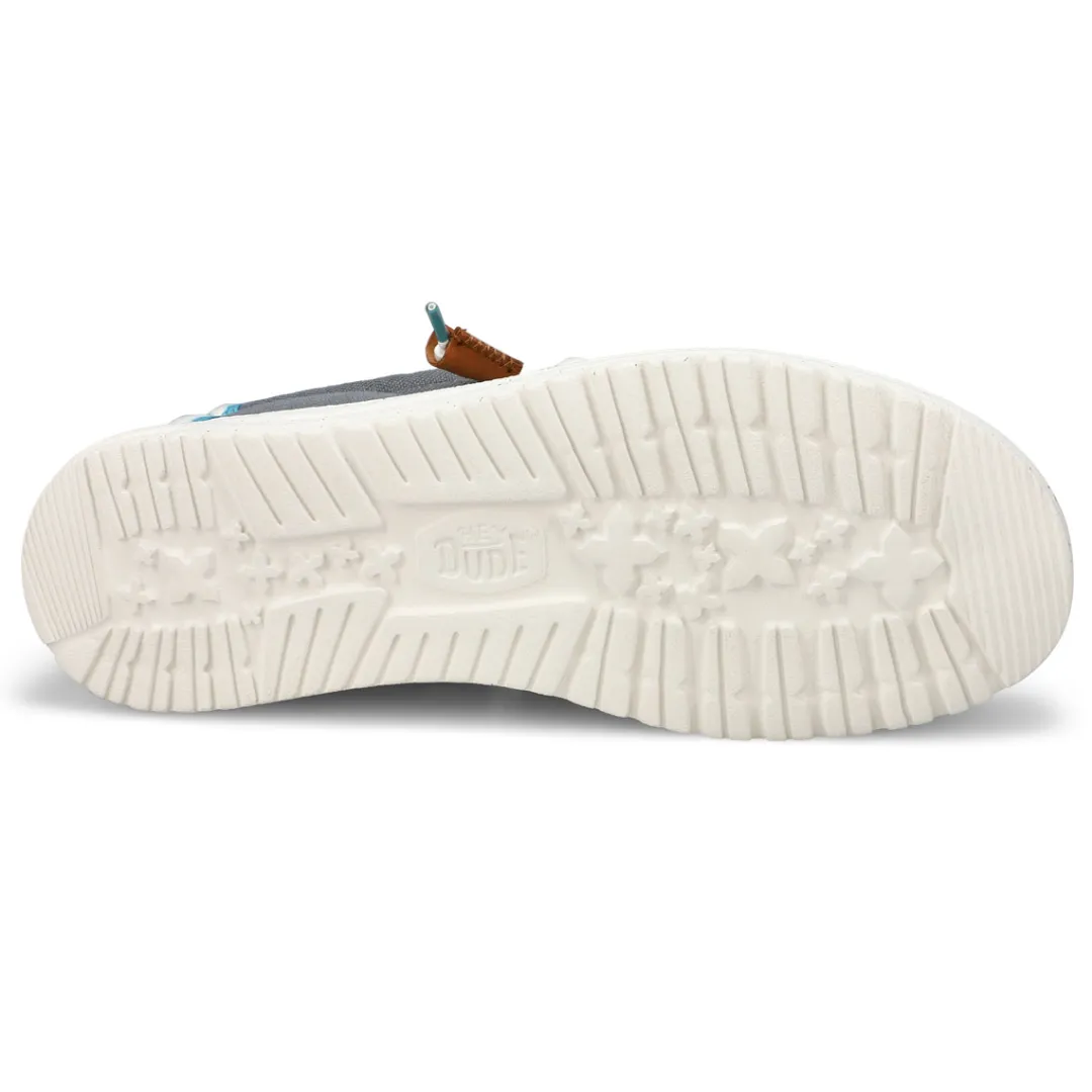 Breeze through your day in effortless style with the Wally Craft Linen White/ Sonte Grey Casual Shoe from HEYDUDE. Inspired by the relaxed feel of your favorite linen shirt, these travel-ready go-to’s deliver lightweight comfort and breathability. Sophisticated details like leather tassels add a refined touch, while the easy-on system and cushy, removable insole keep every step casual, confident, and adventure-ready.