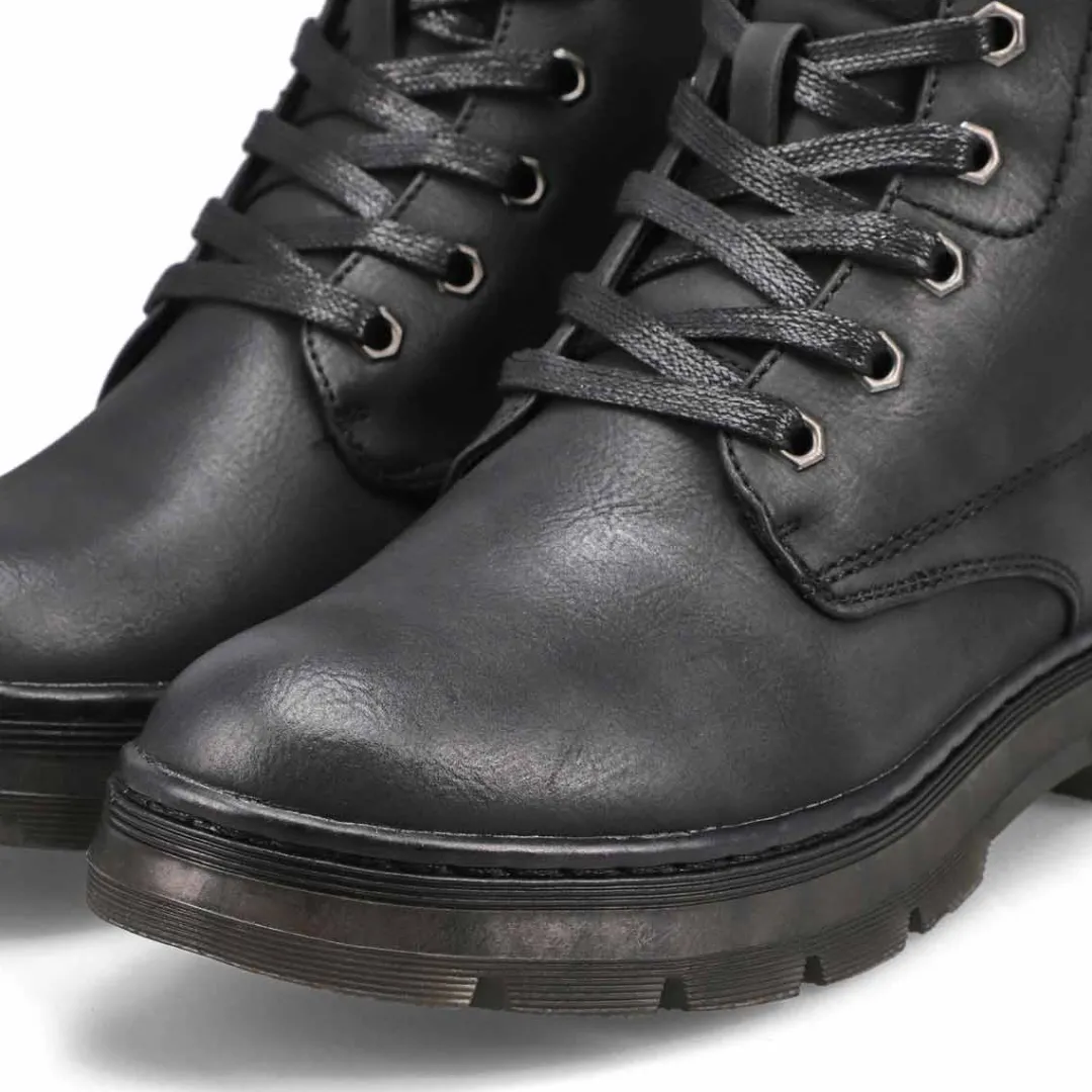 Walk in the Wednesday 02 Vegan black lace up boots from SoftMoc Vegan to feel and look good all day. Featuring a Polyurethane upper with stitch detailing. Lace up closure with a side zipper for easy on/off. Plush lining surrounds the foot in comfort. Lightly cushioned removable insole for all day comfort. Durable TR outsole.