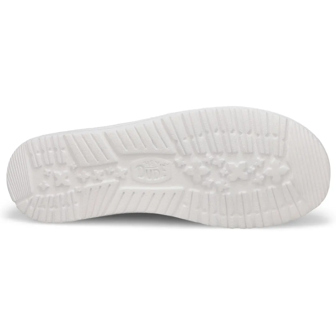Complete with a comfy flexible outsole, eye-catching elastic laces with metallic pop on the end, the Wendy Animal black/ cow shoe from HEYDUDE takes you from office to adventure. The Wendy Animal casual shoe is designed with an ultra-light, flexible outsole The Wendy Animal shoe is a ow-top, chukka construction that is travel ready.