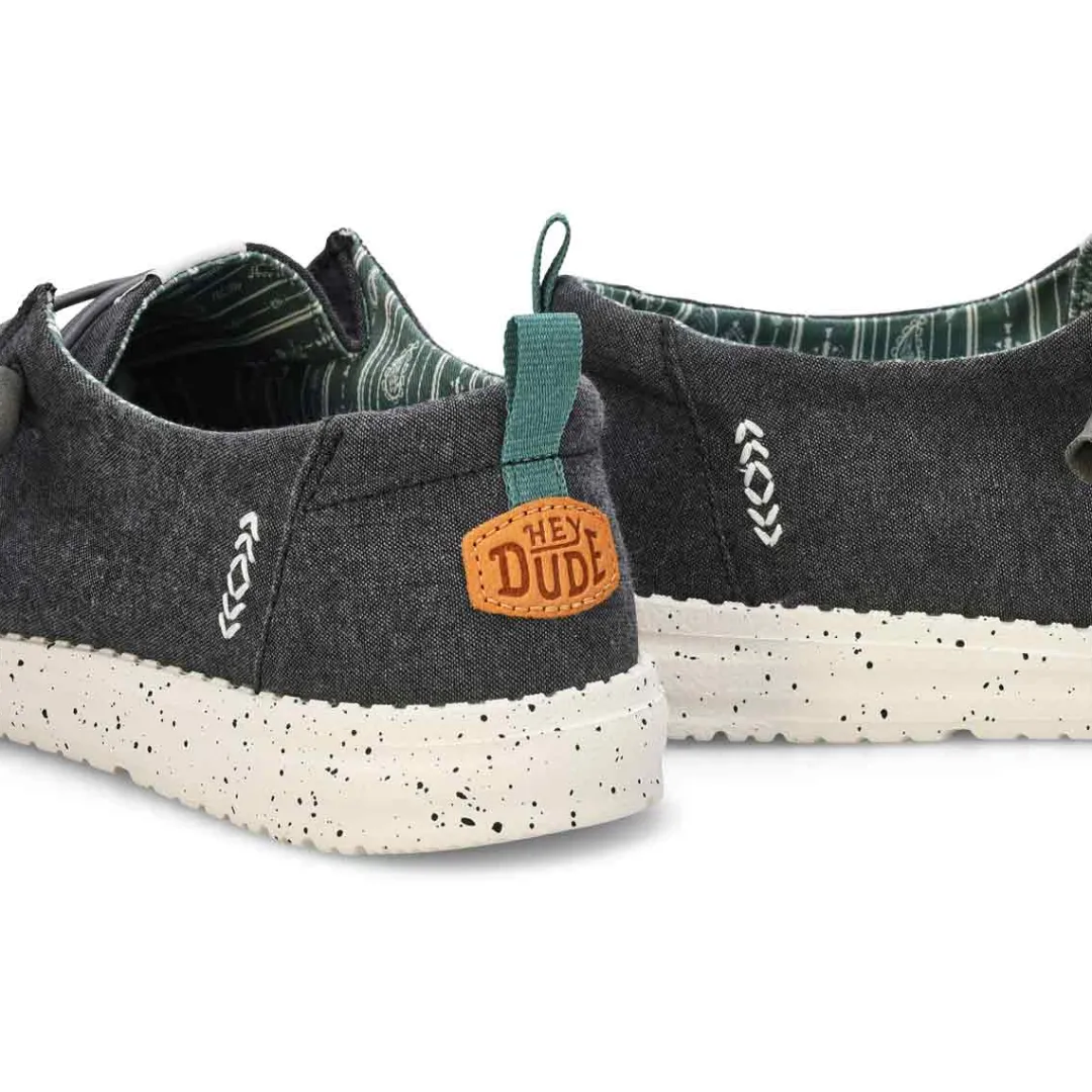 The Wendy Chambray’s textile upper is more lightweight. Elastic laces make the shoes easy to slip on and off. The foam insole adds an extra layer of cushion to the tried-and-true EVA foam outsole. The embroidered detailsm and printed textile lining add an elavated sense of style to this casual shoe.