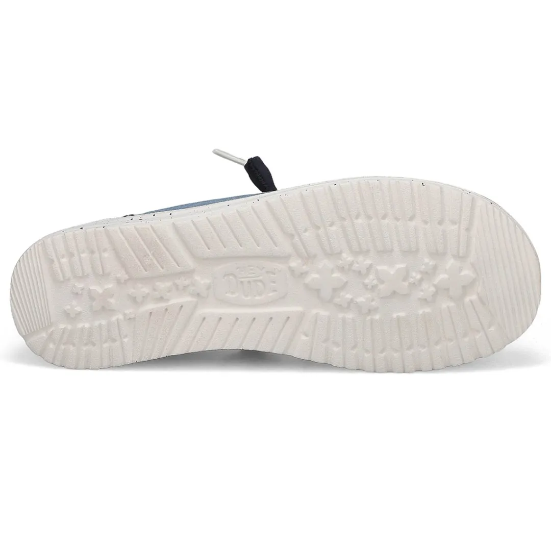 The Wendy Chambray’s textile upper resembles denim but more lightweight. Elastic laces make the shoes easy to slip on and off. The foam insole adds an extra layer of cushion to the tried-and-true EVA foam outsole. The embroidered detailsm and printed textile lining add an elavated sense of style to this casual shoe.
