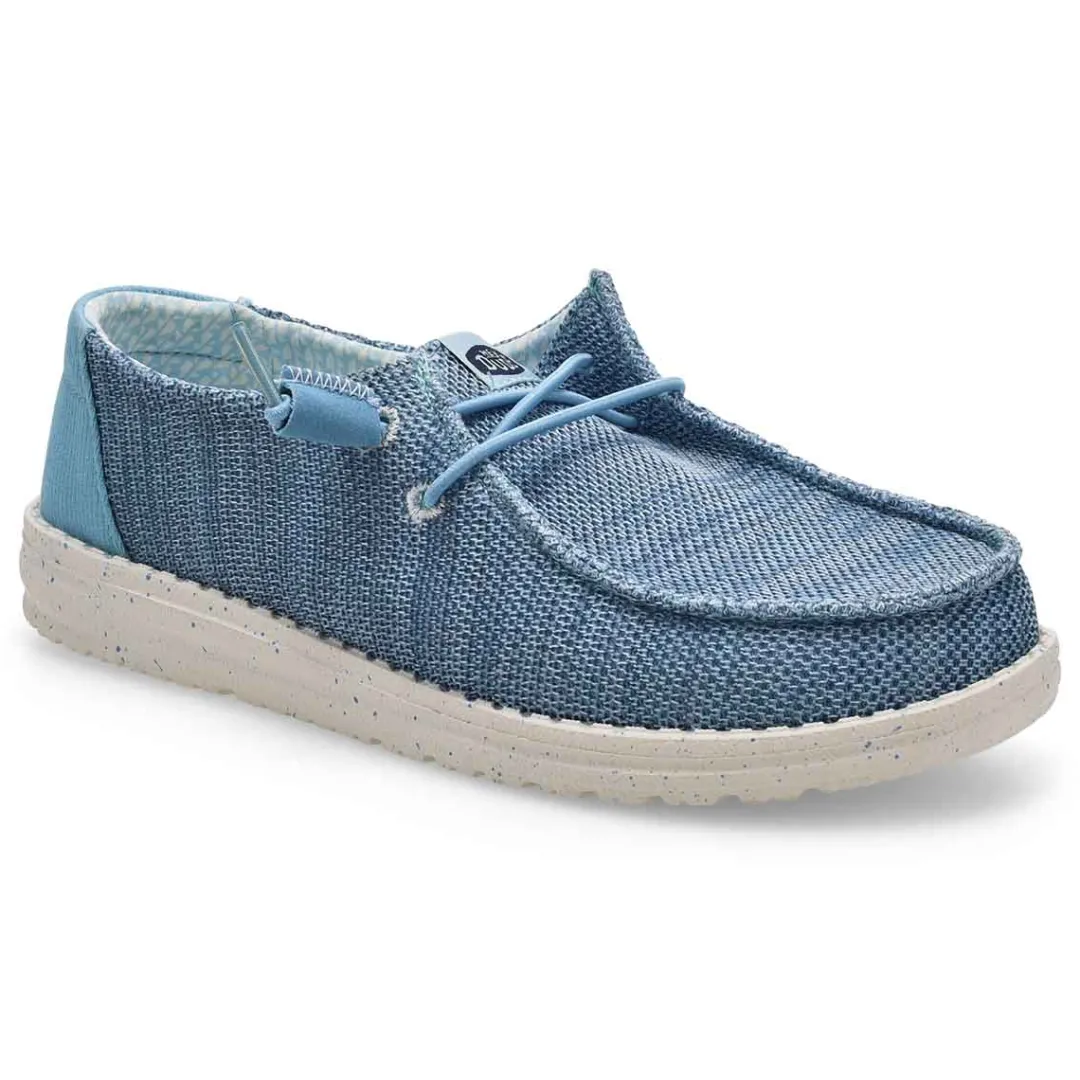 Light, easy and flexible, that’s what the iconic Wendy Stretch Sox rosette casual shoe from HEYDUDE is all about! A classic moc made in a stretchy mesh with contrasting heel detail. Built on an ultralight outsole and the easy-on system elastic laces means you’re good to go at all times. Flex & Fold Technology. Travel Ready .