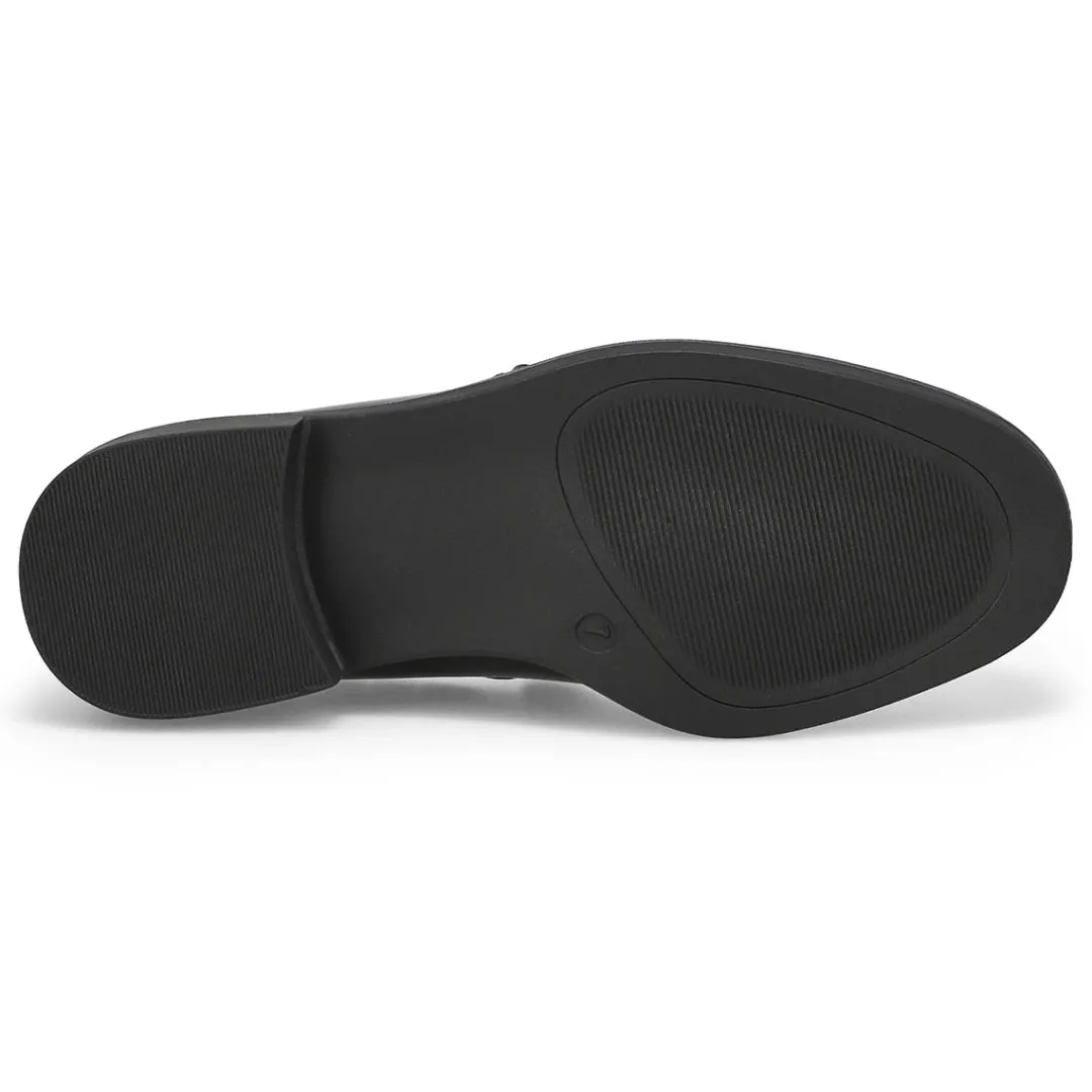 Step outside in style! These classy and comfy black patent shawl loafers are easy to wear and very versatile. You can easily dress up a casual look with these. Decorative detailing, including a bow and some added flare with the fringe. Cemented durable construction for every day use. Slip into these and you won’t be sorry.