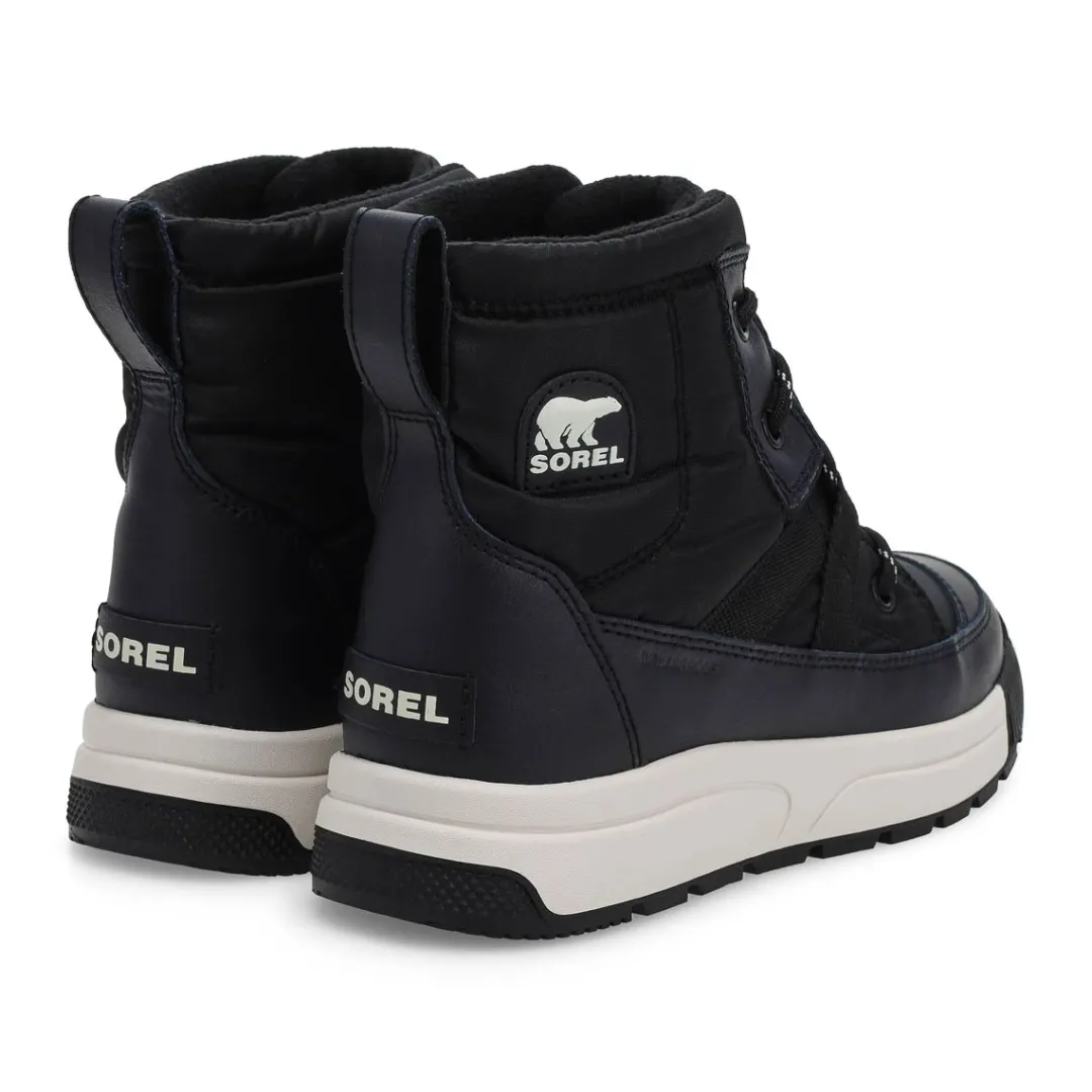 Your favorite cold-weather boot just got even better. Sorel kept the insulated warmth and lightweight, sporty style, and refreshed it with a roomier toe, more cushion underfoot and serious tread. Your little one will love playing in the snow in the Whitney III Mid Waterproof Winter Boot from Sorel. Waterproof nylon upper and PU coated synthetic overlays. Laces are not waterproof.