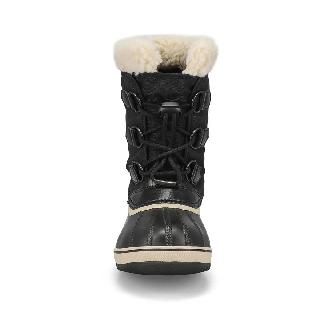 Whether building snowmen or riding sleds, the Yoot Pac waterproof snow boot from Sorel offers warmth, durability, and comfort in a versatile, low-profile design. A waterproof nylon upper with a removable felt liner sports a soft sherpa pile snow cuff. Whatever the forecast says, they’ll take it all on in a boot that packs a punch. It’s waterproof and seam-sealed to keep the chill out, and has cozy insulation to keep warmth in.