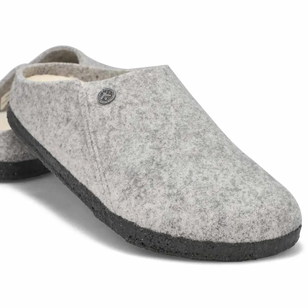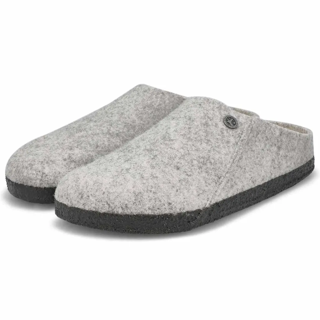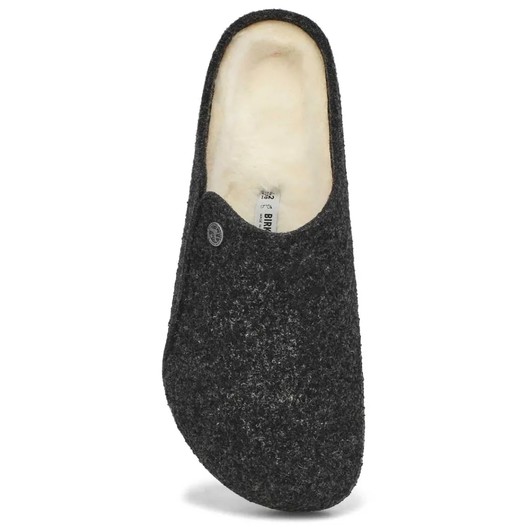A new slipper style for Birkenstock, the Zermatt anthracite slipper features shearling-lined removable cork and latex footbeds. The footbed contours to the foot for added support and cushioning confort. Featuring a boiled wool upper that is gentle on bare feet and the outsoles are dipped in natural rubber to provide excellent traction.