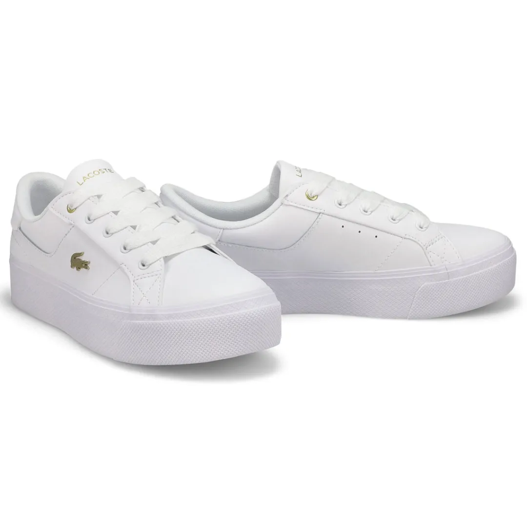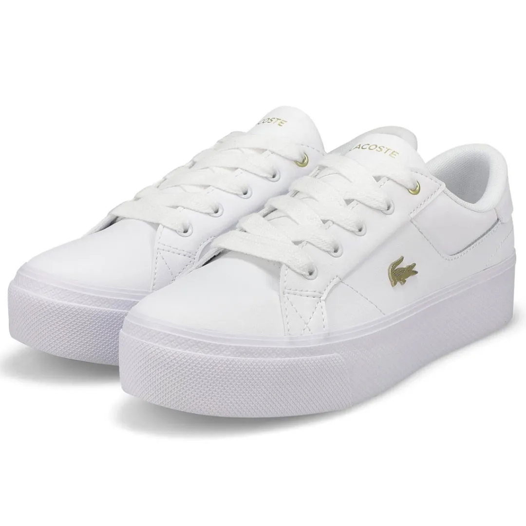 If you love collecting cool and stylish footwear, the Lacoste Ziane Platform white/gold sneakers are a perfect addition to your collection. Leather and polyurethane upper. Polyester lining and footbed. Brand’s signature name and icon on the tongue and upper. The Ziane Platform sneaker is designed with a synthetic outsole with added traction.